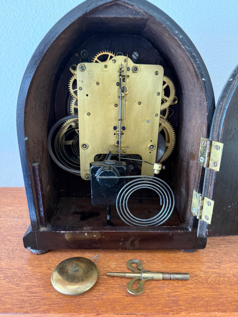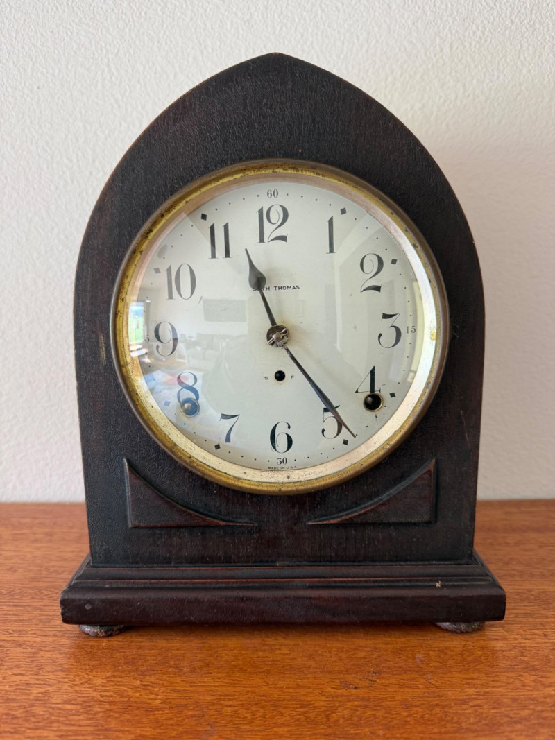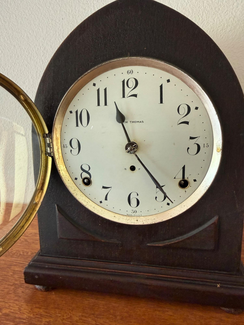 Tested and not keeping time. This is an antique Seth Thomas beehive‑style mantel clock, made in the early 1900s. It has a curved, arched wooden case (usually mahogany), a round clock face, and an 8‑day mechanical movement that strikes on the hour and half‑hour. These clocks are known for their classic shape, reliable movements, and warm vintage look.