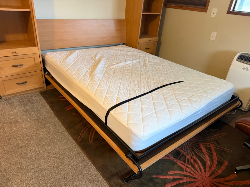 Queen size mattress. Hydraulic arms for easy use. Will need to be disassembled.