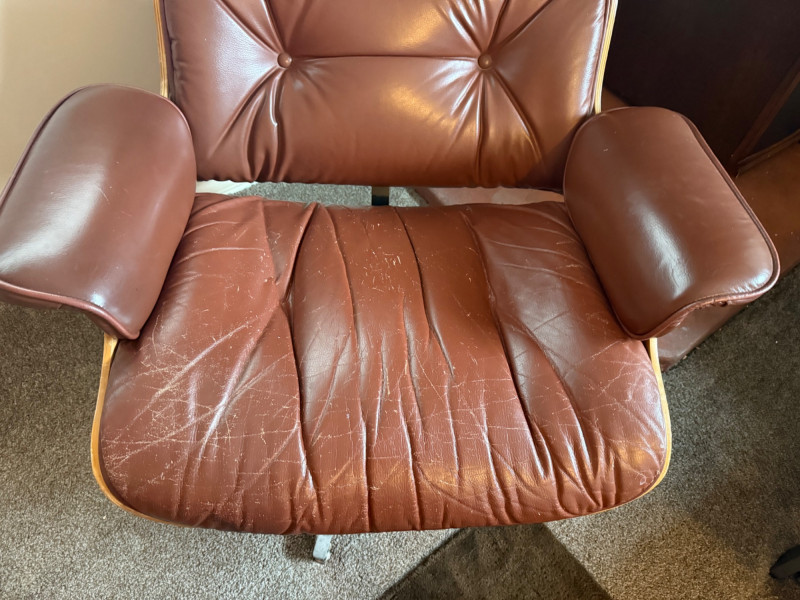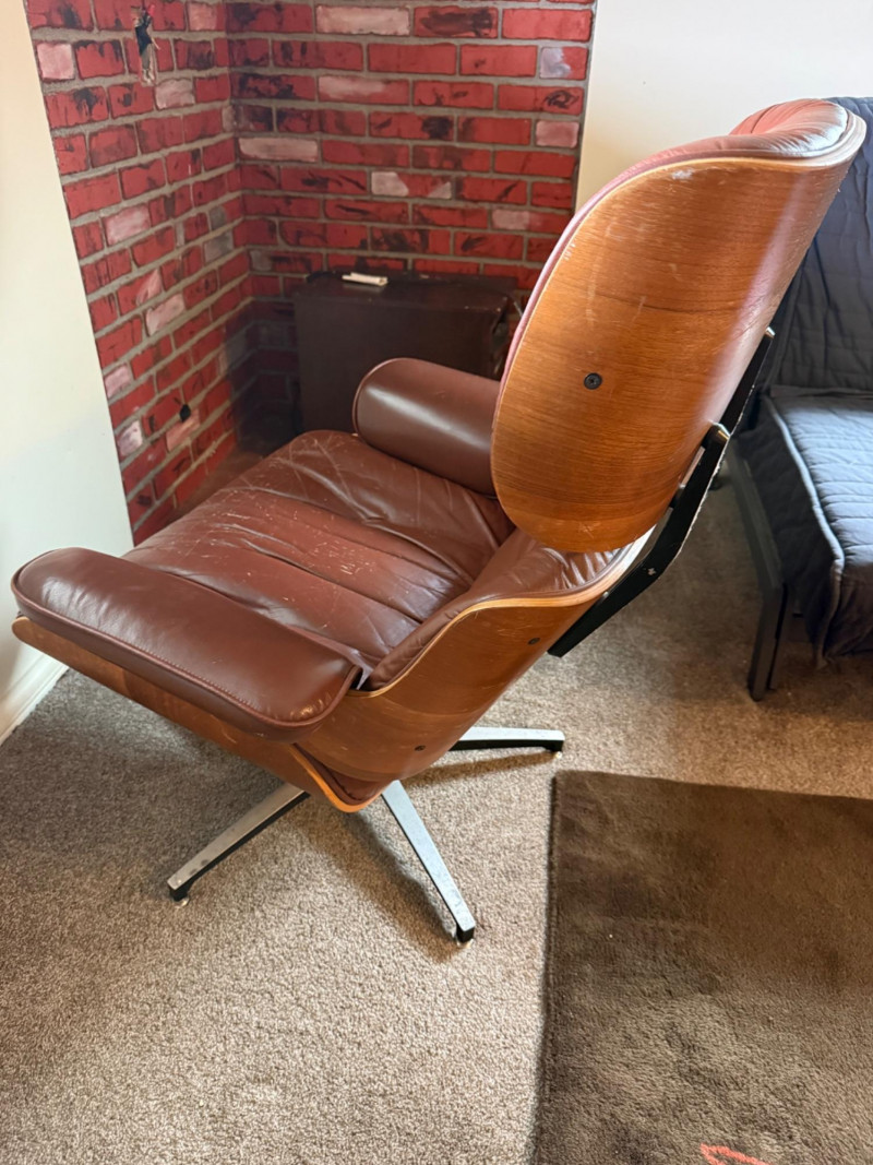 Lot # 49 - Eames Style Leather Chair with Ottoman