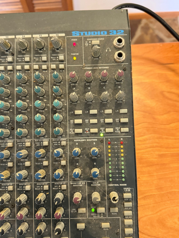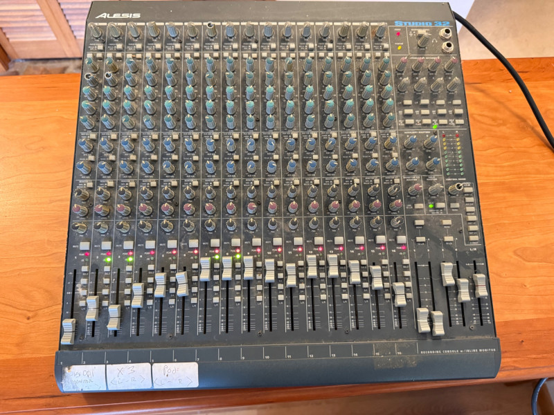 The Alesis Studio 32 is a 16‑channel, 4‑bus analog mixing console designed for home studios, project studios, and small live setups. It was popular in the 1990s–2000s for its clean sound, flexible routing, and compact footprint.