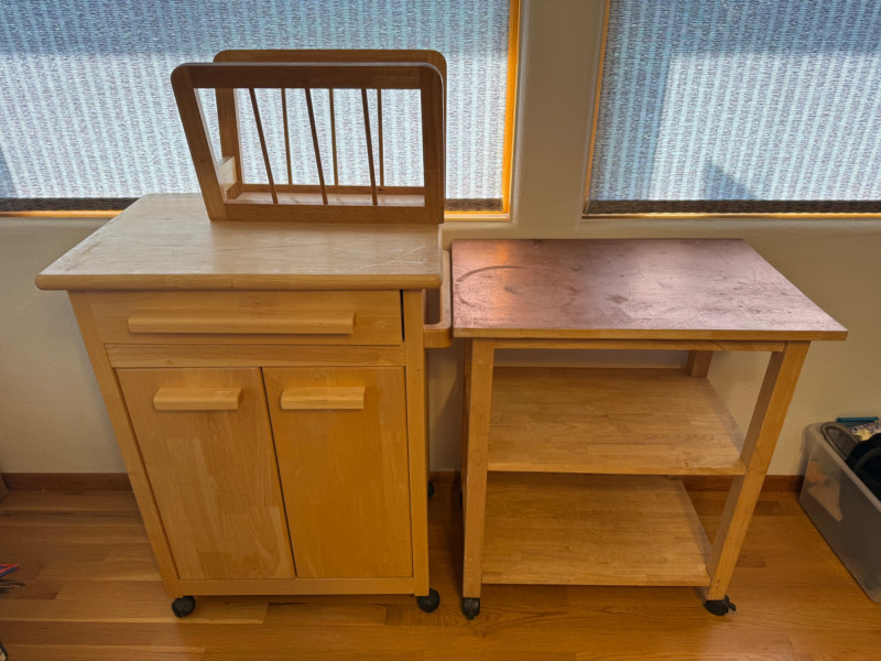 Lot # 67 - Rolling Wood Kitchen Carts and Magazine Holder