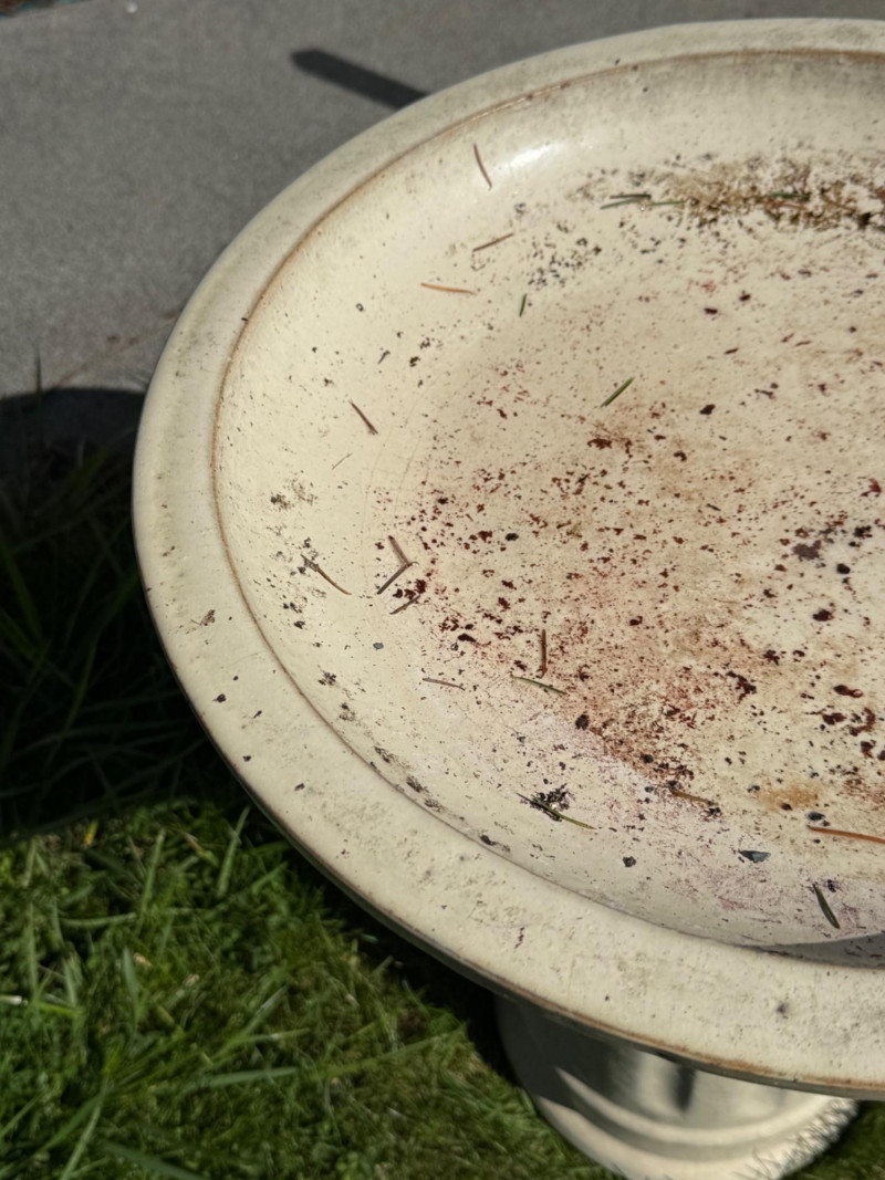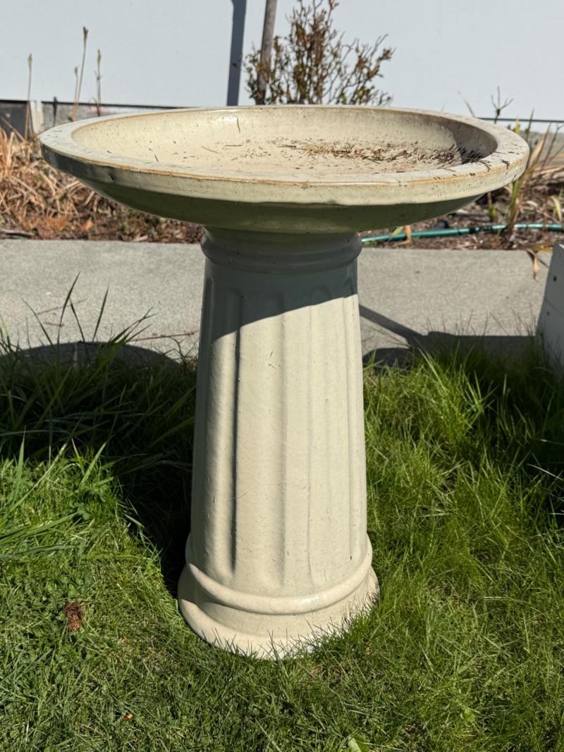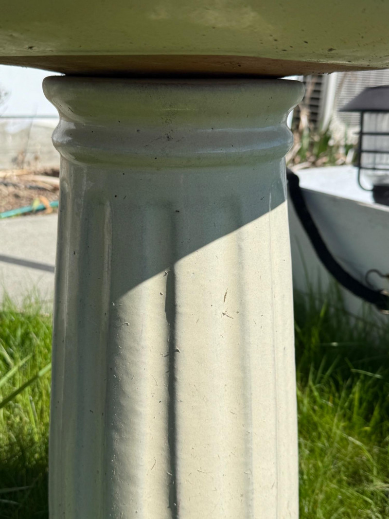 Terra Cotta Glazed Bird Bath. The top piece is removable for easier transportation. Heavy