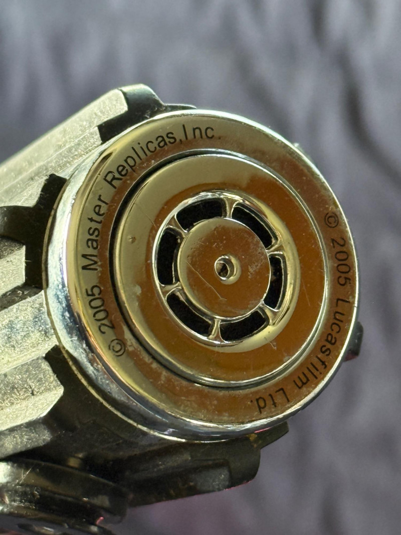 They light up and make realistic sounds. The Yoda light saber is missing the end cap. Metal bases, and plastic light saber. Comes with stands.