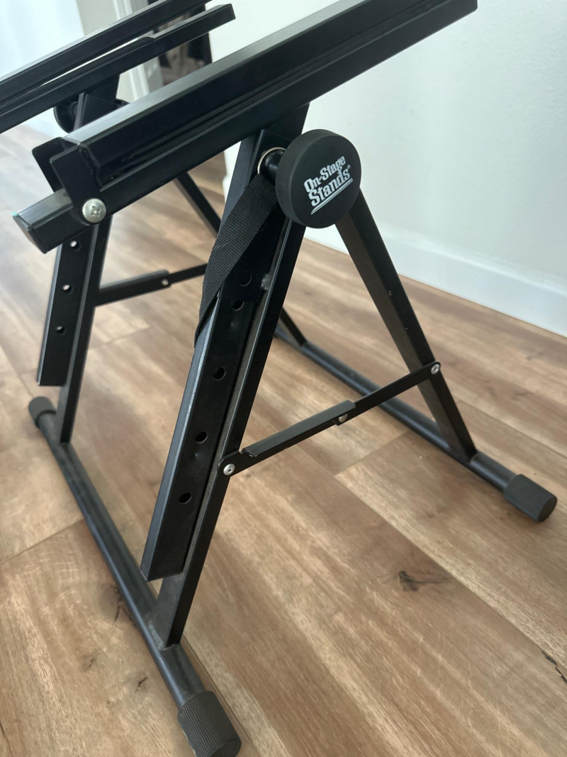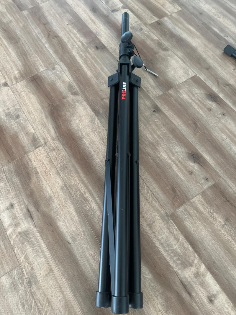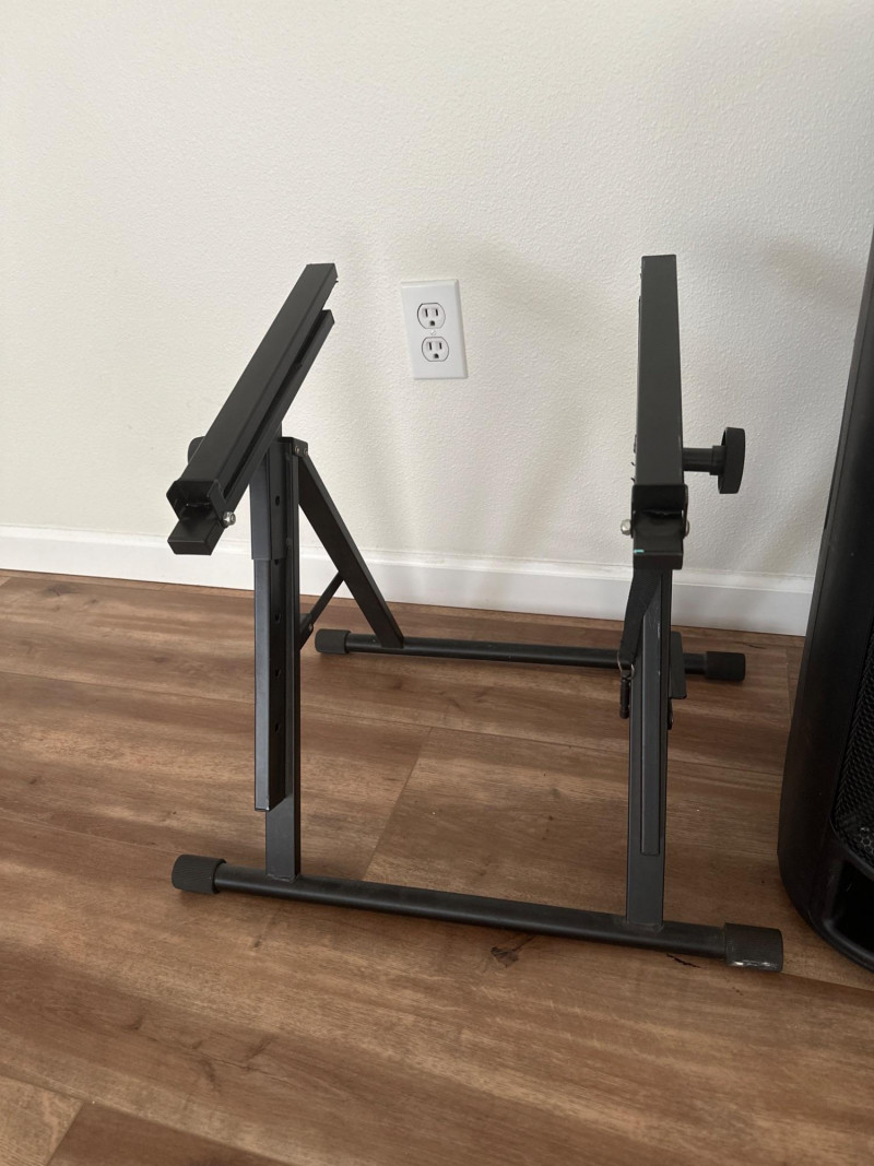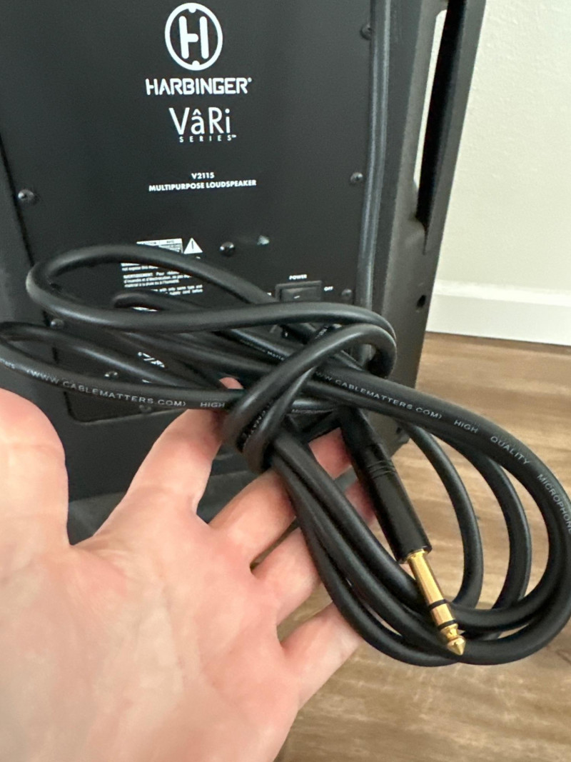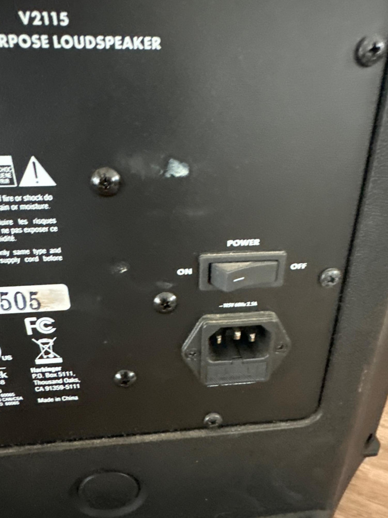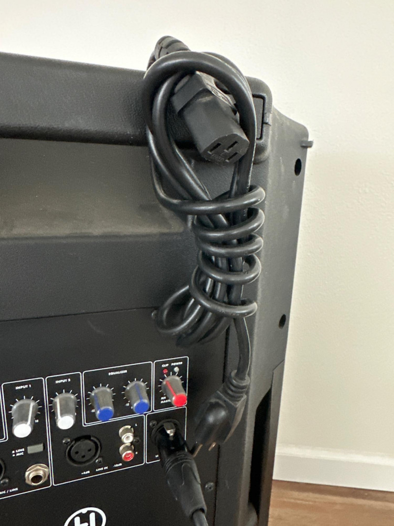 Harbinger VARI V2115 powered multipurpose loudspeaker. This versatile PA speaker features a built-in amplifier and integrated mixer controls, making it suitable for live sound, DJ setups, events, presentations, or practice spaces. The rear control panel offers multiple input options with gain controls, EQ adjustments, and master volume for easy sound customization. The durable molded cabinet includes a built-in carry handle for easier transport. This lot also includes a Proline speaker stand, a metal equipment stand, power cable, and audio cable as shown in the photos. Item Details: Brand: Harbinger Series: VARI Model: V2115 Type: Powered Multipurpose Loudspeaker / PA Speaker Color: Black Inputs: XLR, 1/4", and RCA inputs Controls: Gain, EQ (Low/High), Master Volume Measurements: 27” H x 18” W x 15” D