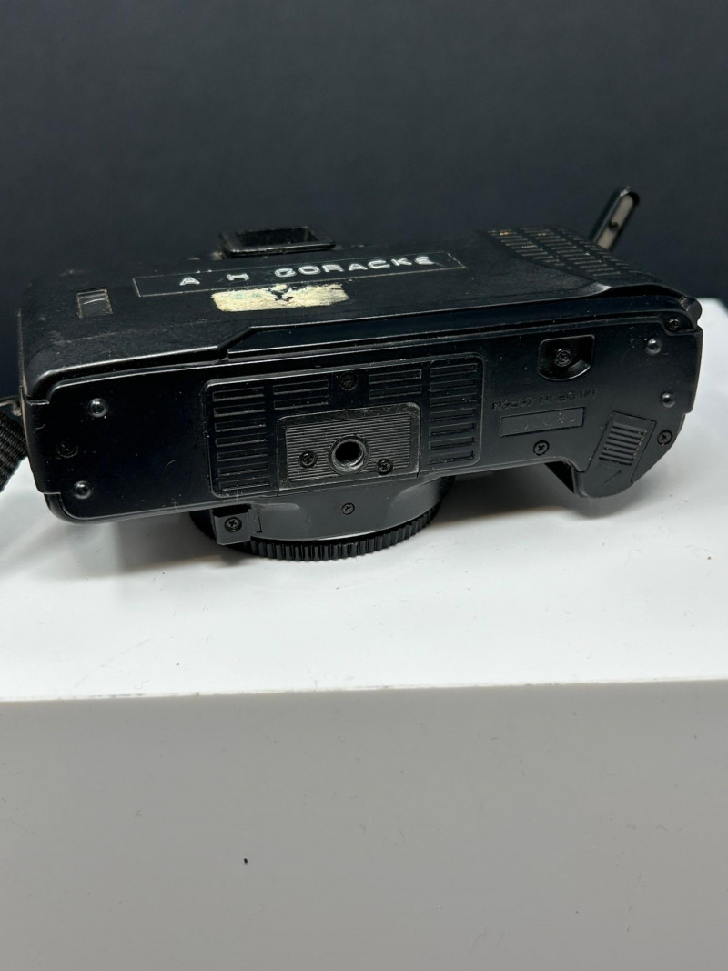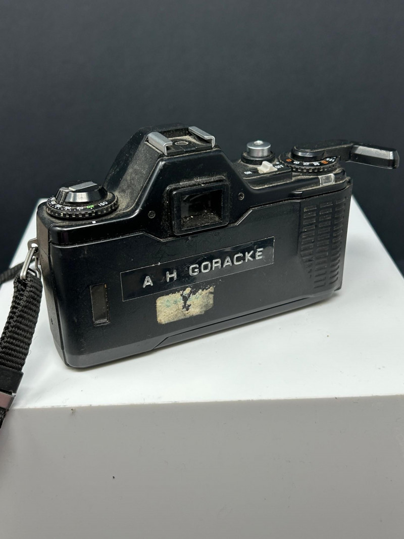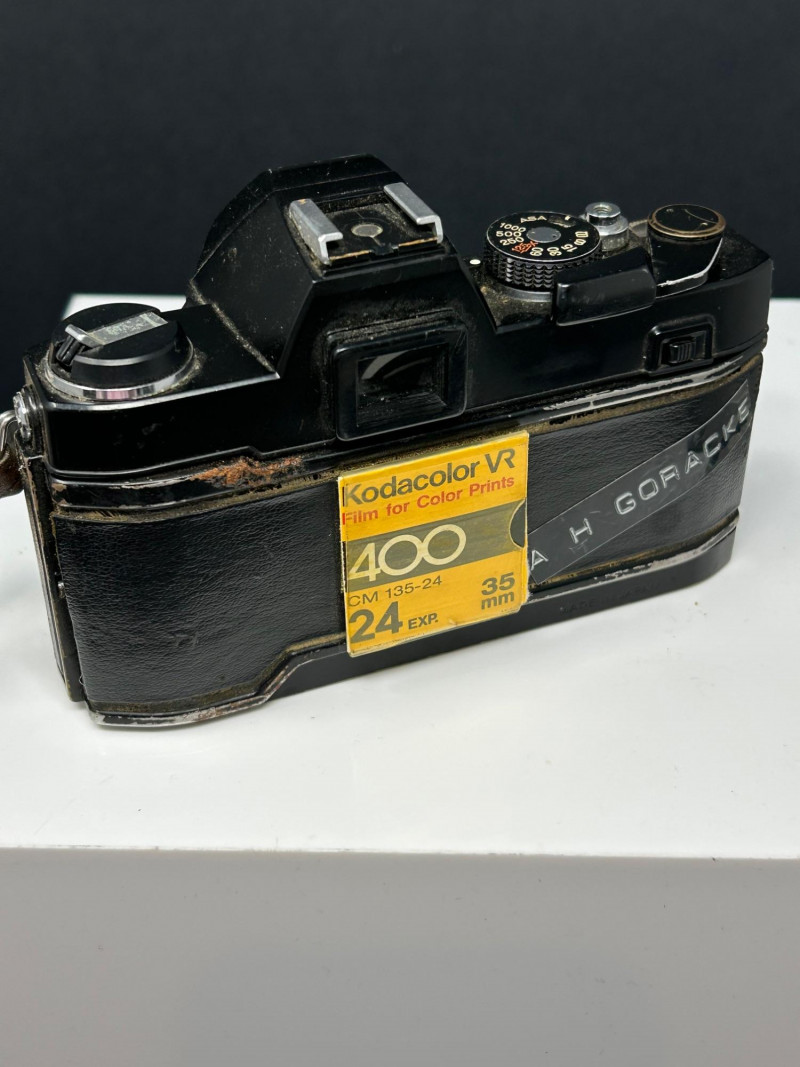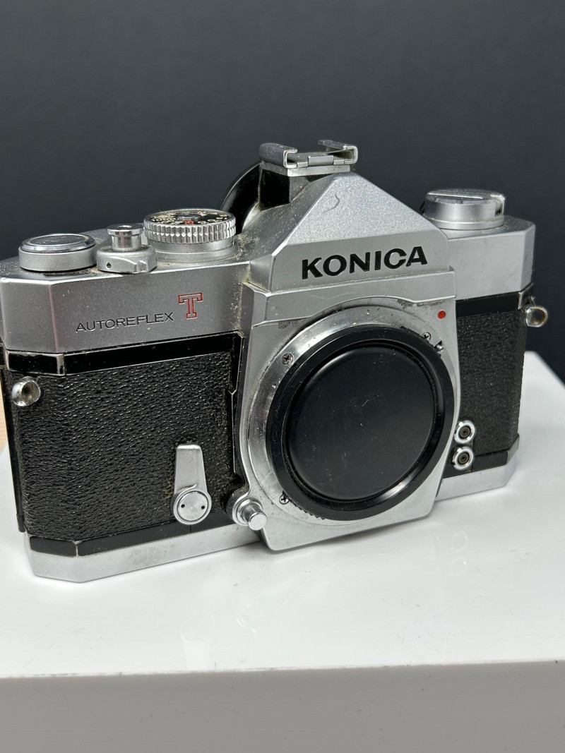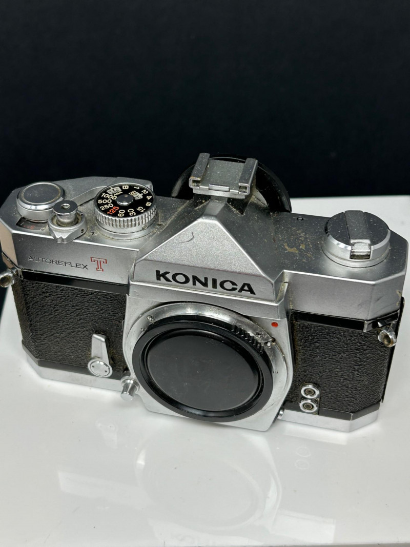 A group of three vintage Konica 35mm SLR camera bodies including the Autoreflex T, Autoreflex TC, and TC-X. Also included are the Autoreflex T and TC-X instruction manuals and a camera strap. These cameras reflect Konica’s classic mid-to-late 20th century SLR design, featuring durable construction and compatibility with Konica AR-mount lenses. The cameras show cosmetic wear consistent with age and use. One camera has a name label on the back and another contains a Kodacolor VR 400 film cartridge. Together, they make an appealing lot for collectors of vintage film cameras, display pieces, or restoration projects. Lot Details: Konica Autoreflex T 35mm SLR Camera Body Konica Autoreflex TC 35mm SLR Camera Body Konica TC-X 35mm SLR Camera Body
