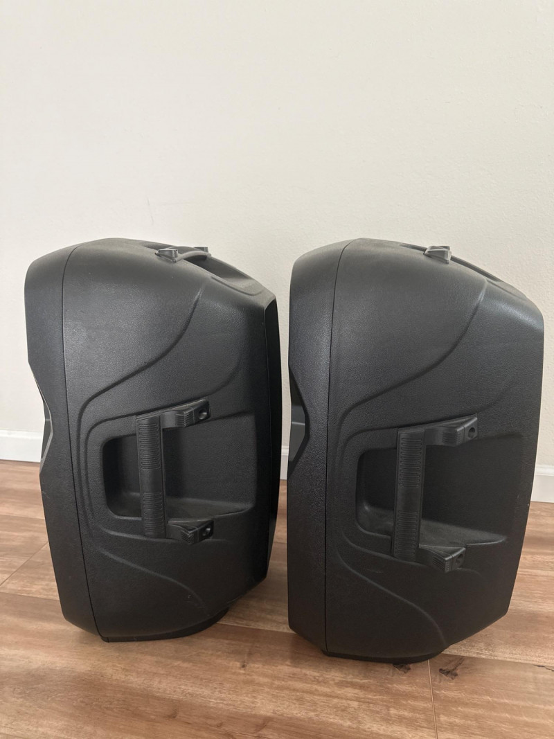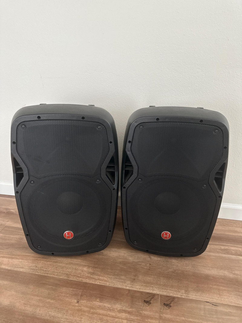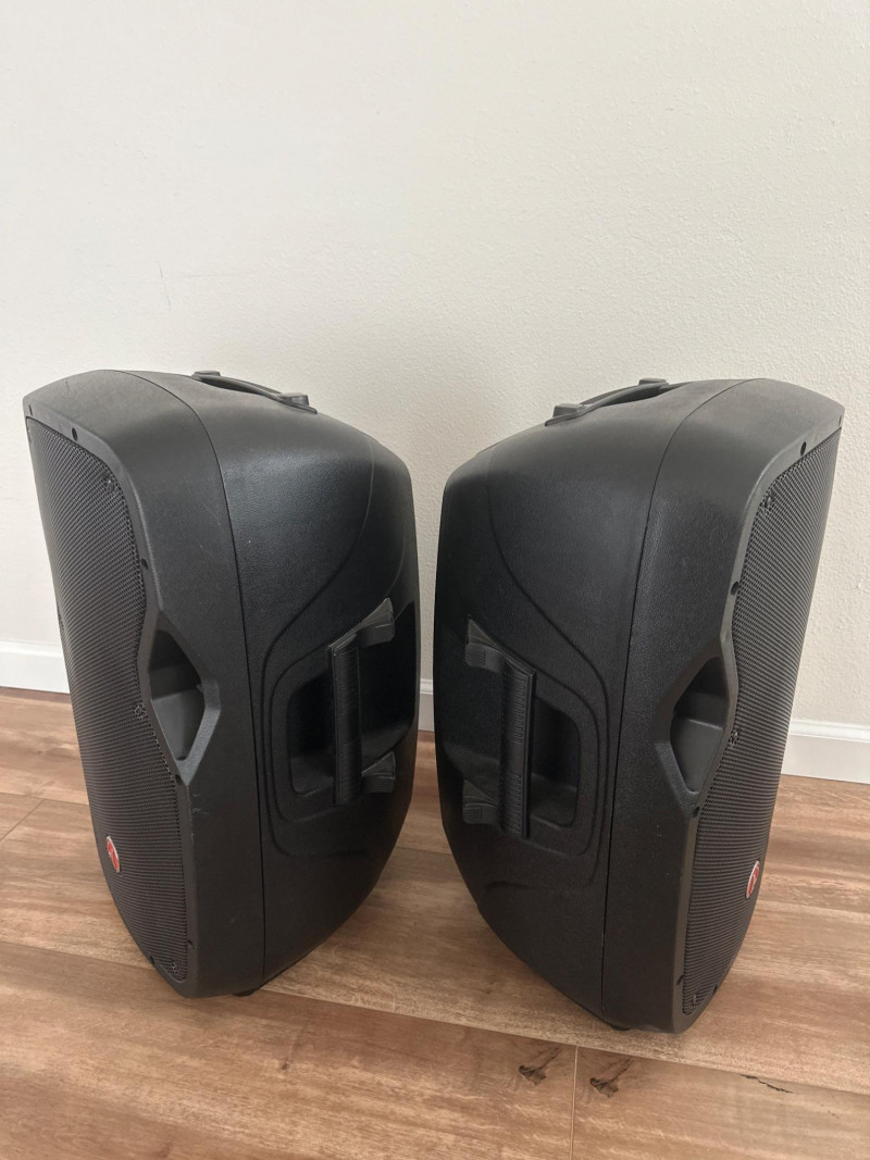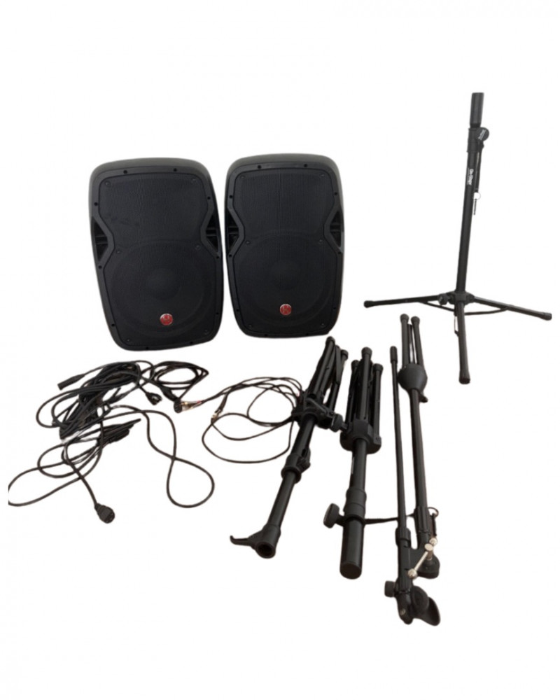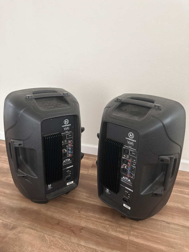 Lot # 6 - Set of Harbinger VARI Series V1012 Powered Speakers with Stands