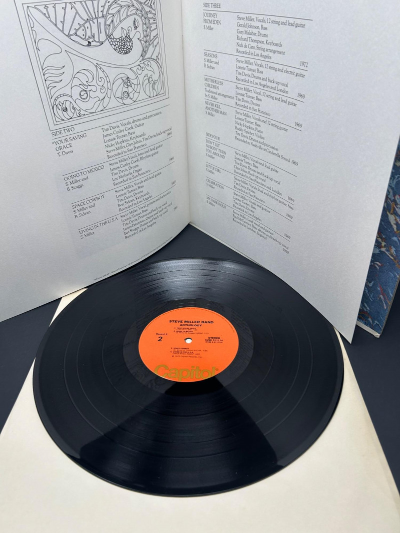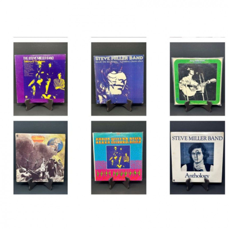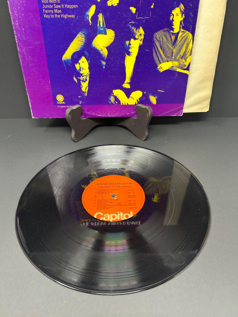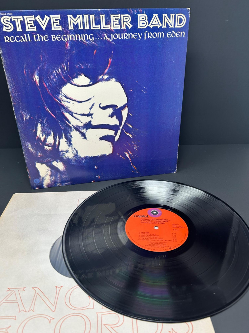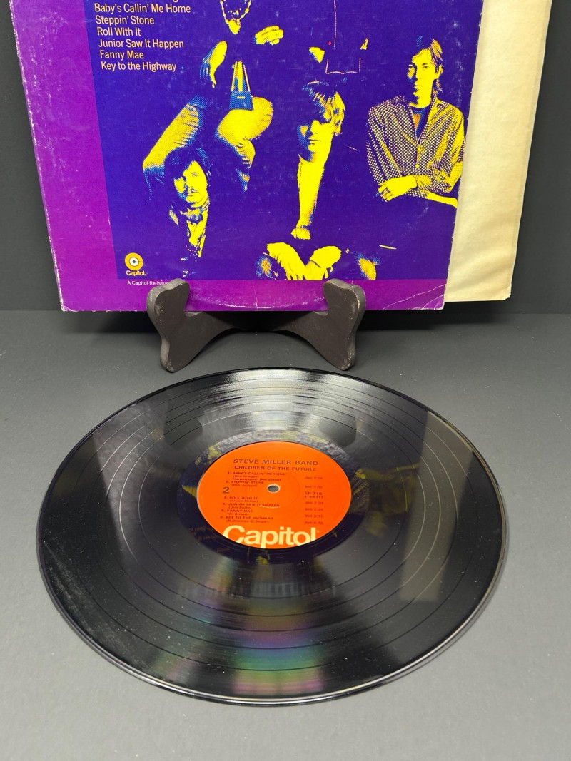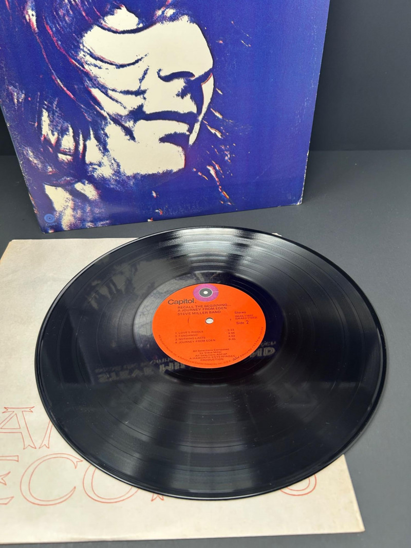 Lot of classic rock vinyl records by the Steve Miller Band. This collection includes several albums with original covers and sleeves, featuring colorful psychedelic artwork and classic Capitol Records labels. Albums visible in this lot include: Rock Love Children of the Future Recall the Beginning… A Journey from Eden Sailor Anthology (The Best of the Steve Miller Band) Psychedelic Steve Miller Band album cover Each vinyl record features Side 1 and Side 2 with Capitol Records center labels, showing the track listings and album information. Some albums include gatefold covers with interior artwork, photos, lyrics, and credits. This lot includes the vinyl records, album covers, and inner sleeves shown in the photos. Please review all photos carefully for the album artwork, record labels, and both sides of the vinyl records, which are shown for reference. Great addition for collectors of classic rock vinyl.