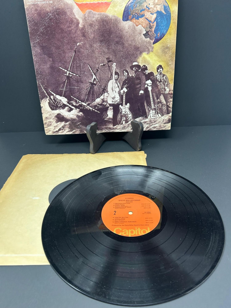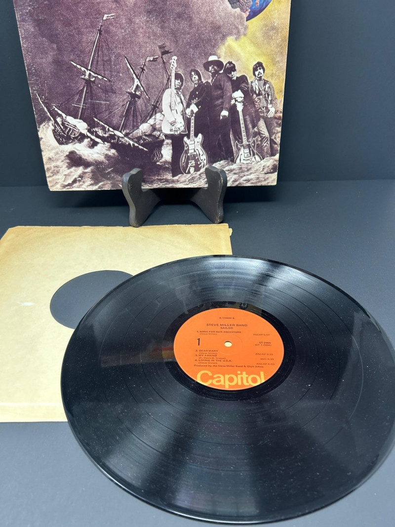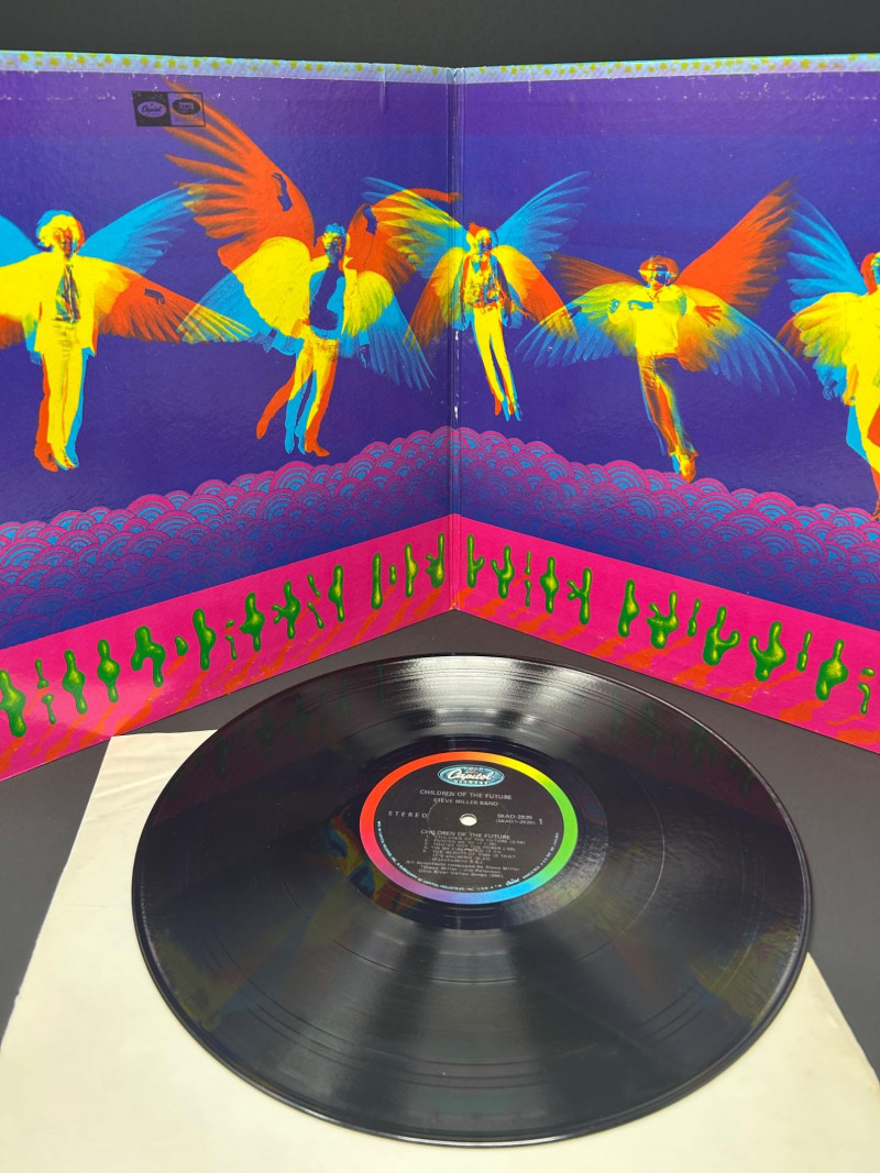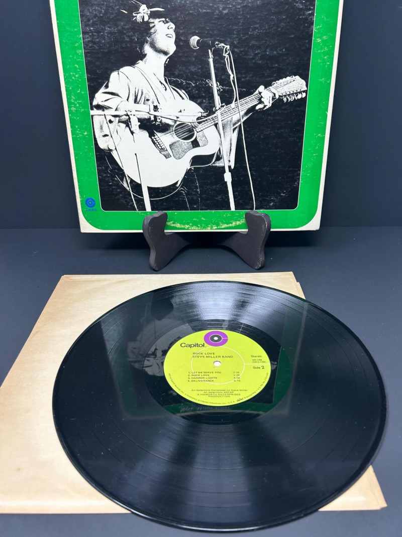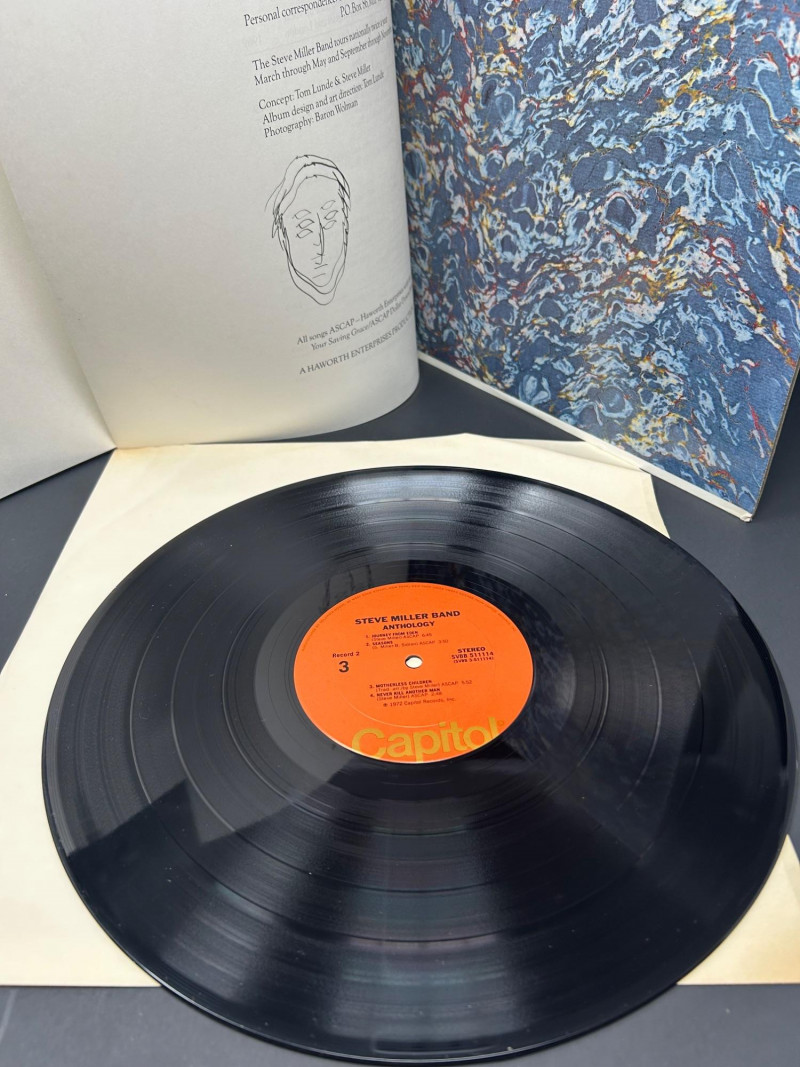 Lot of classic rock vinyl records by the Steve Miller Band. This collection includes several albums with original covers and sleeves, featuring colorful psychedelic artwork and classic Capitol Records labels. Albums visible in this lot include: Rock Love Children of the Future Recall the Beginning… A Journey from Eden Sailor Anthology (The Best of the Steve Miller Band) Psychedelic Steve Miller Band album cover Each vinyl record features Side 1 and Side 2 with Capitol Records center labels, showing the track listings and album information. Some albums include gatefold covers with interior artwork, photos, lyrics, and credits. This lot includes the vinyl records, album covers, and inner sleeves shown in the photos. Please review all photos carefully for the album artwork, record labels, and both sides of the vinyl records, which are shown for reference. Great addition for collectors of classic rock vinyl.