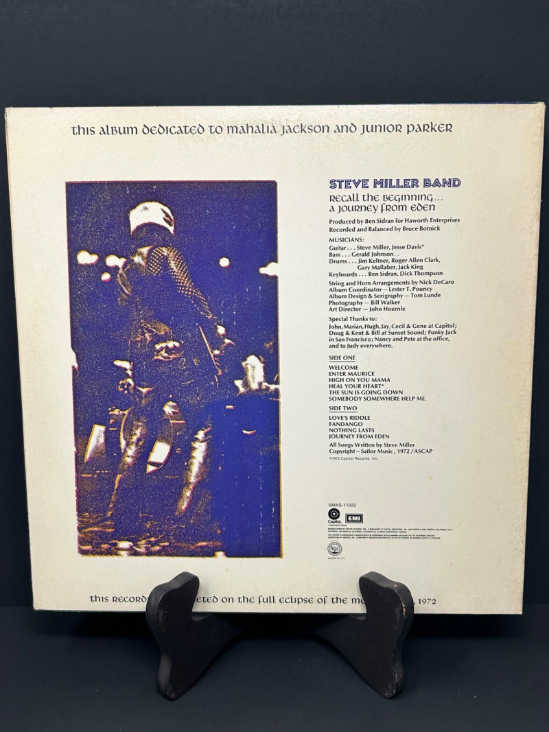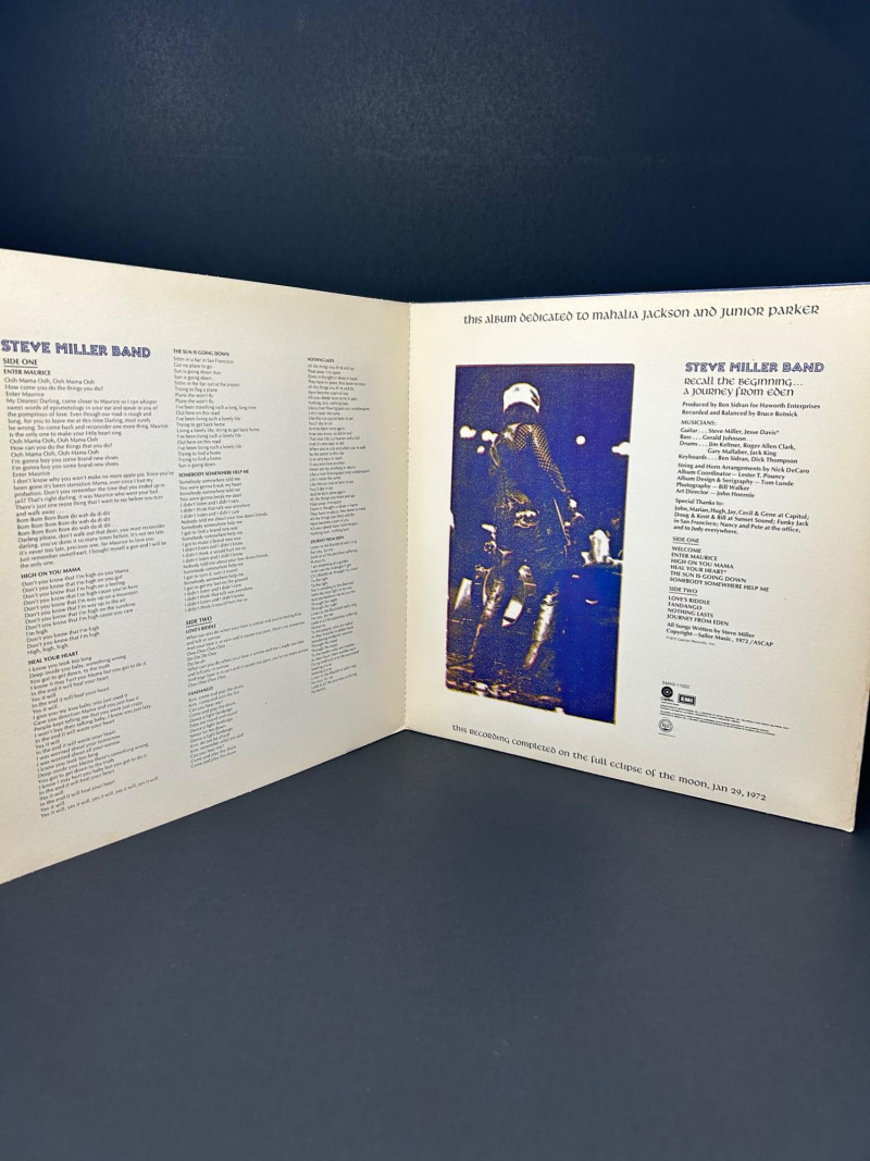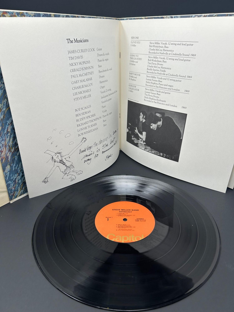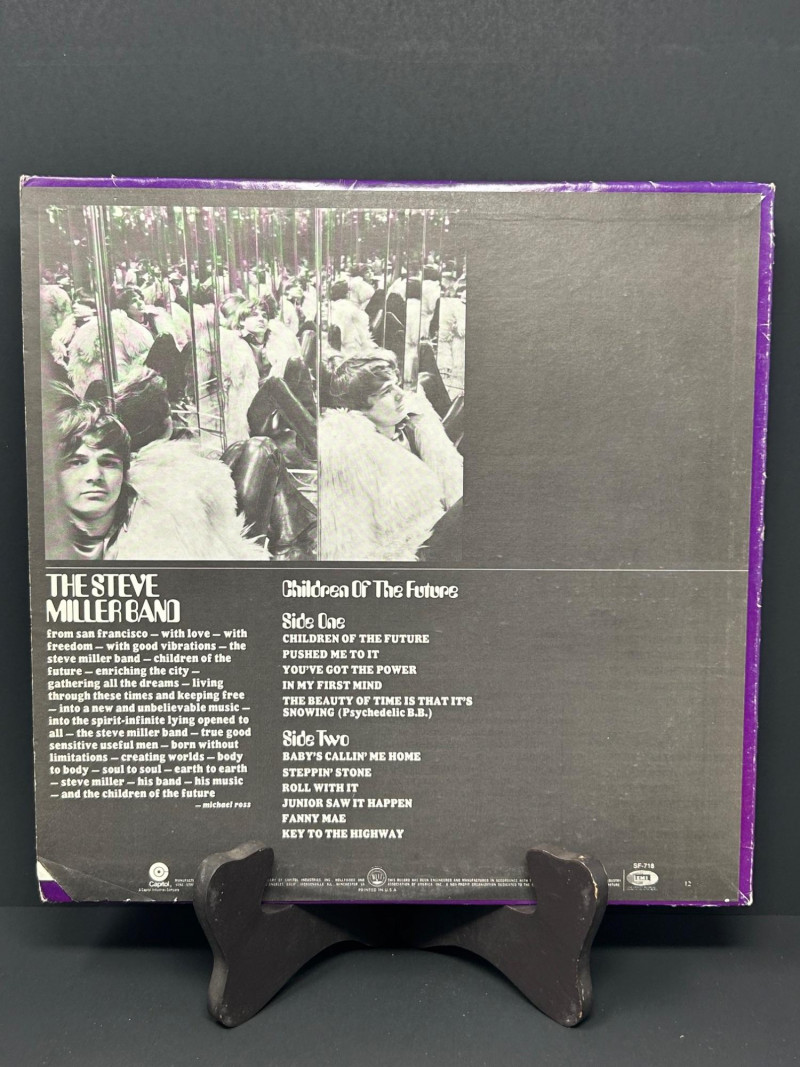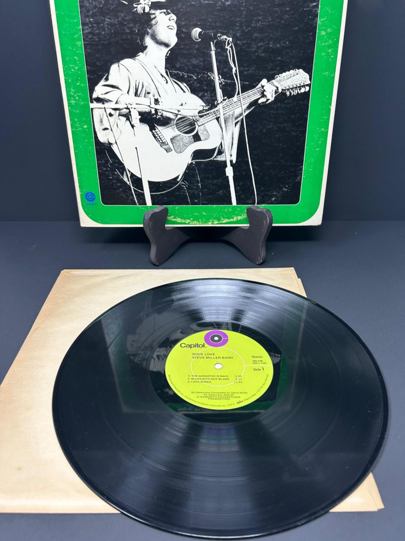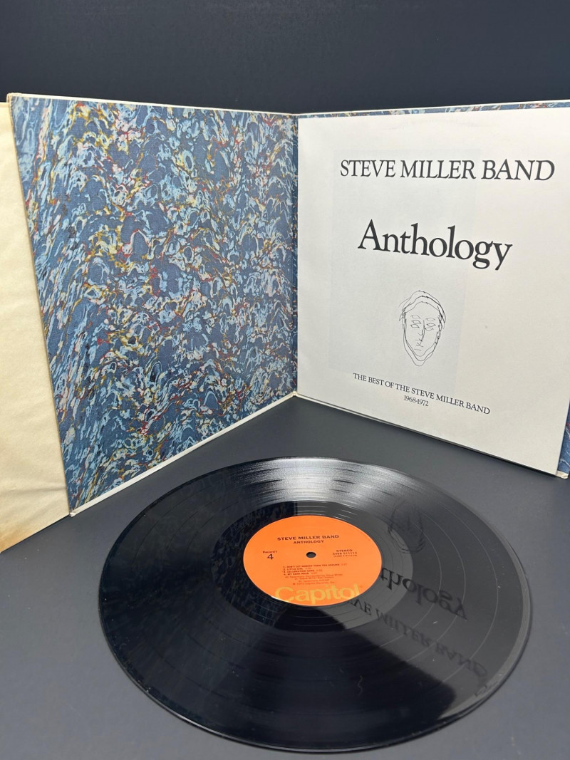 Lot of classic rock vinyl records by the Steve Miller Band. This collection includes several albums with original covers and sleeves, featuring colorful psychedelic artwork and classic Capitol Records labels. Albums visible in this lot include: Rock Love Children of the Future Recall the Beginning… A Journey from Eden Sailor Anthology (The Best of the Steve Miller Band) Psychedelic Steve Miller Band album cover Each vinyl record features Side 1 and Side 2 with Capitol Records center labels, showing the track listings and album information. Some albums include gatefold covers with interior artwork, photos, lyrics, and credits. This lot includes the vinyl records, album covers, and inner sleeves shown in the photos. Please review all photos carefully for the album artwork, record labels, and both sides of the vinyl records, which are shown for reference. Great addition for collectors of classic rock vinyl.