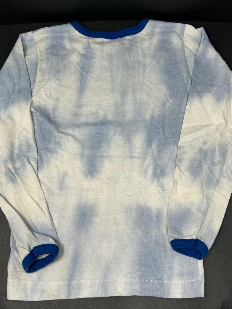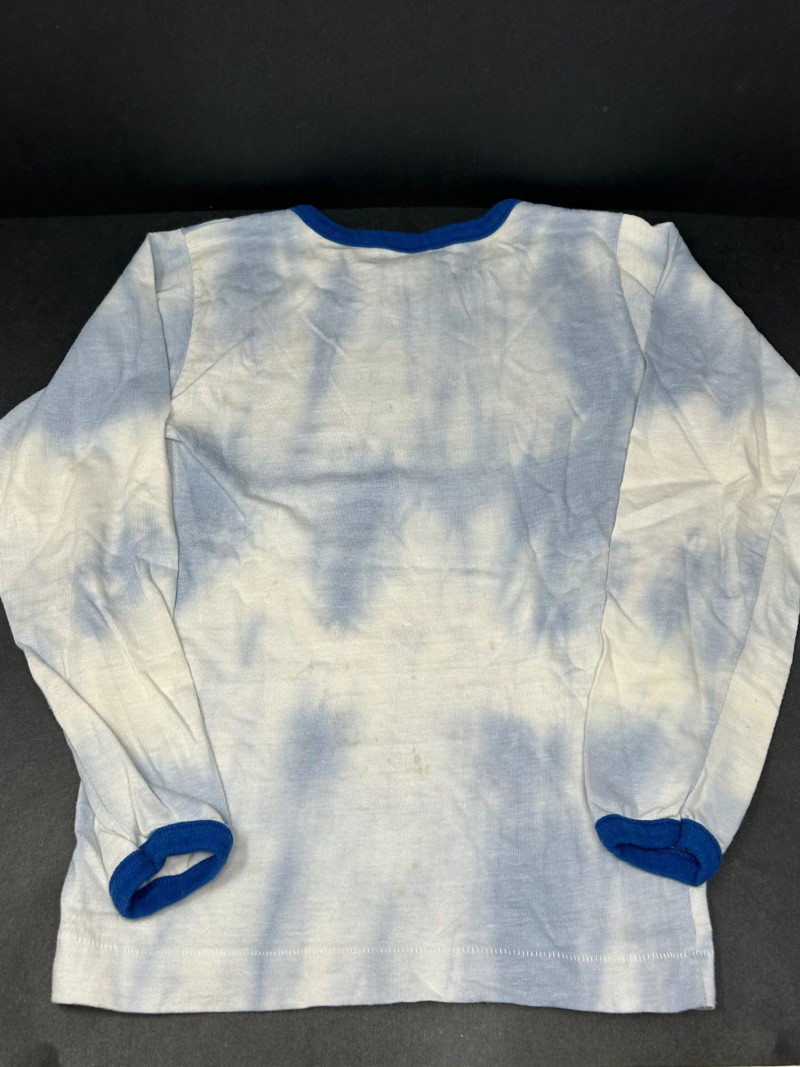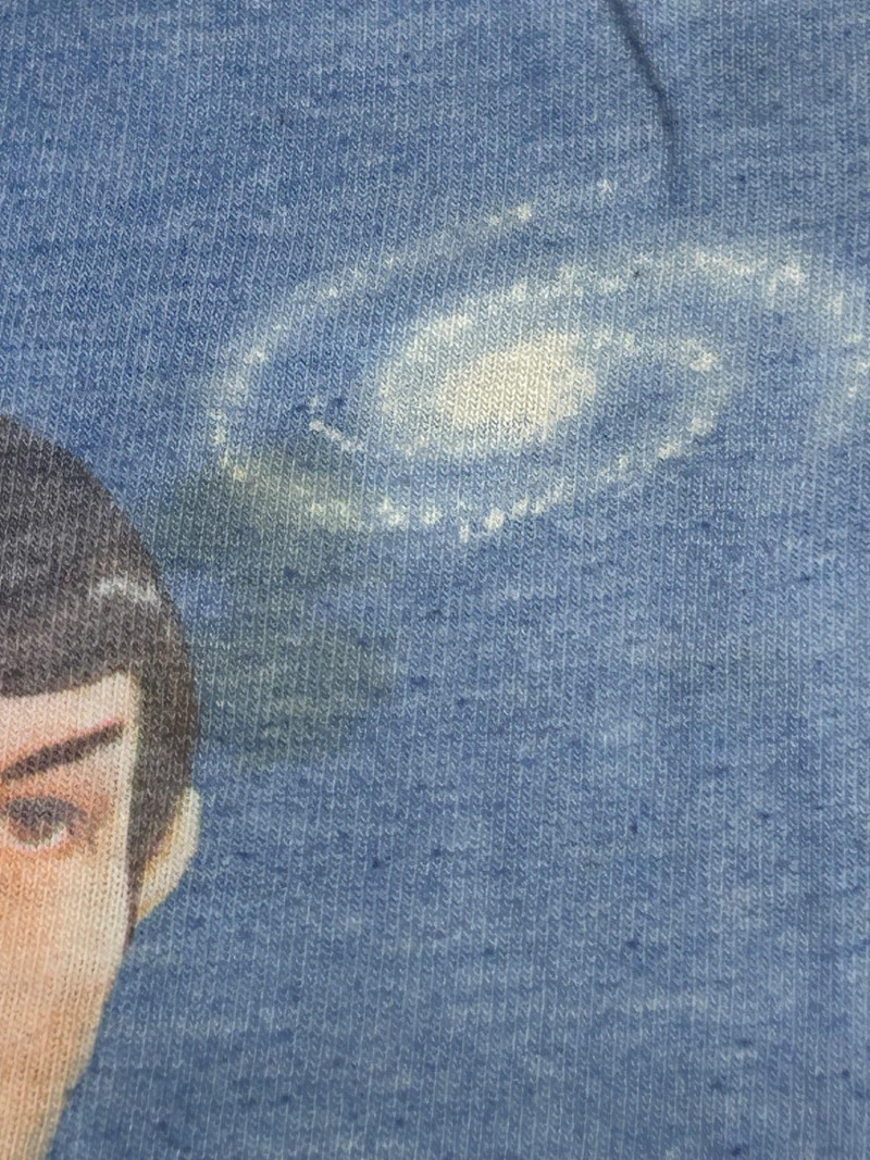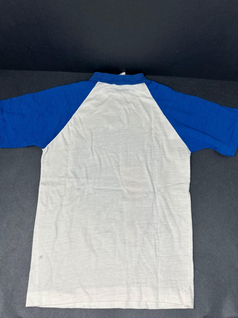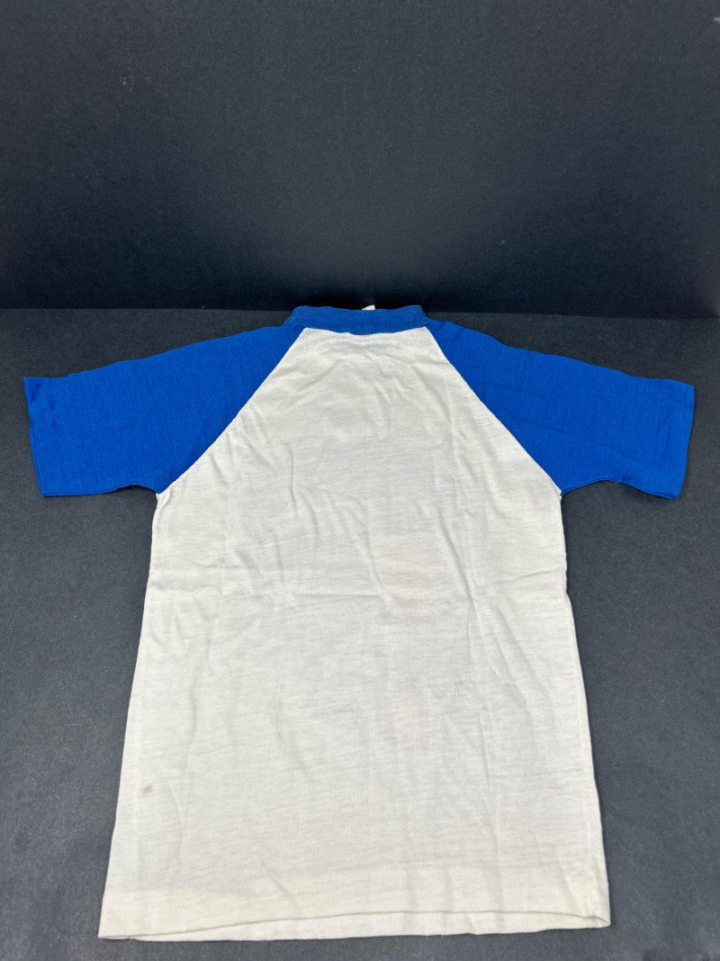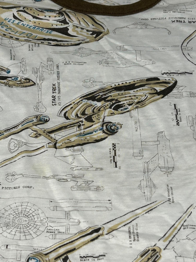 Lot of 3 vintage Star Trek kids t-shirts, featuring classic graphics and licensed designs from the 1970s. These shirts include rare Dormoor tags and iconic imagery from the original Star Trek series. Items Included: “Star Trek Lives!” Long Sleeve Shirt White shirt with blue collar and cuffs Colorful “Star Trek Lives!” graphic on the front Dormoor tag Marked size 10 Star Trek Enterprise All-Over Print Shirt Features starships and schematic-style illustrations across the shirt Brown collar Dormoor tag Marked size 12 Spock Graphic Raglan Shirt White body with blue raglan sleeves Large portrait graphic of Spock with galaxy background ©1973 Paramount Pictures Great vintage Star Trek collectible lot for fans, collectors, or display.