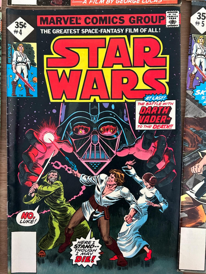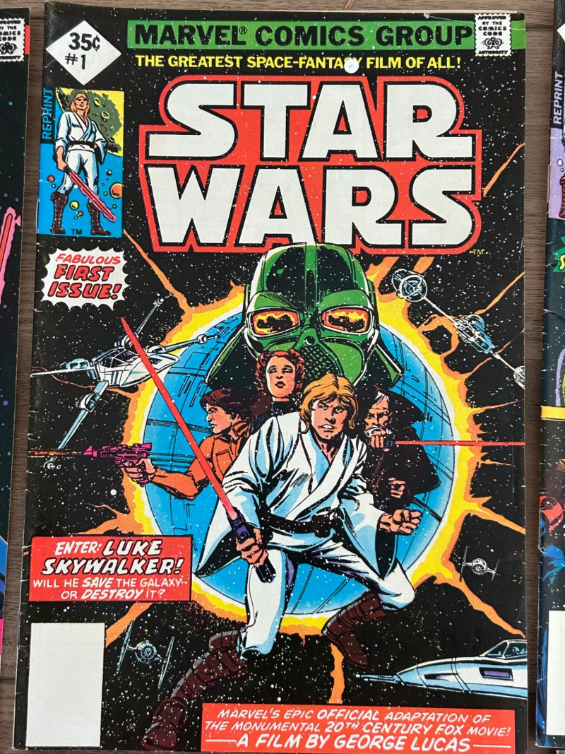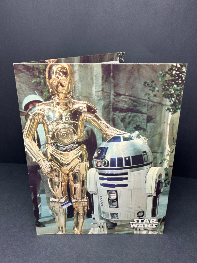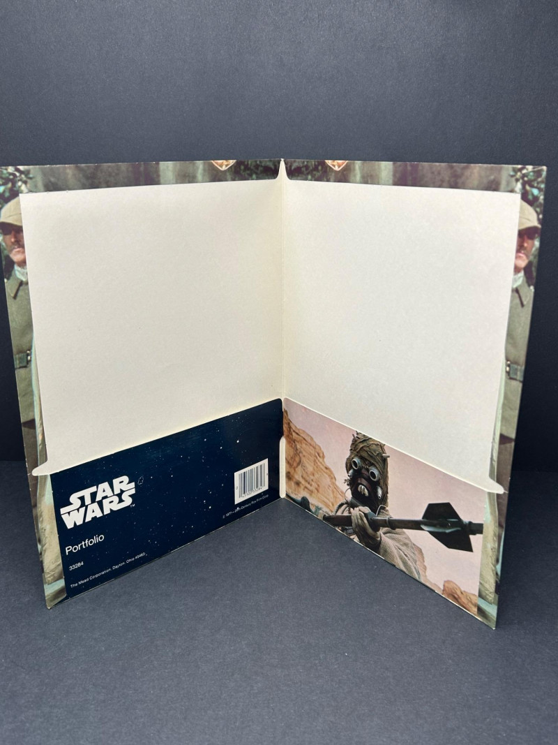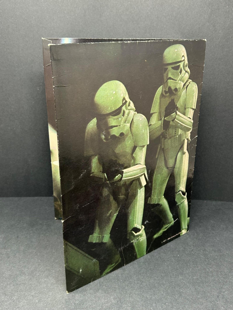 Up for auction is a Star Wars collectible lot featuring vintage Marvel comics along with Star Wars themed portfolio folders and a film strip display piece. A great set for collectors of classic Star Wars memorabilia. The comics showcase iconic characters such as Luke Skywalker, Darth Vader, Princess Leia, Chewbacca, and other classic Star Wars characters from the original trilogy era. Included in this lot are multiple Marvel Star Wars comic books (35¢ cover price era), Star Wars portfolio folders featuring Obi-Wan Kenobi, Stormtroopers, and C-3PO with R2-D2, and a Star Wars film strip collectible displaymounted in a protective case. The artwork and covers are colorful and highly collectible, making this lot a great addition to any Star Wars or vintage comic collection. Item Details: Franchise: Star Wars