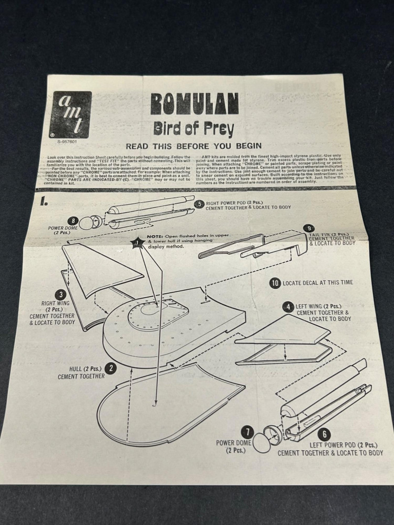 • Romulan Bird-of-Prey model kit parts with instruction sheet