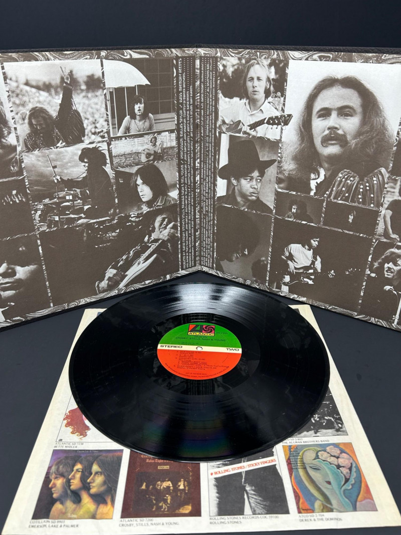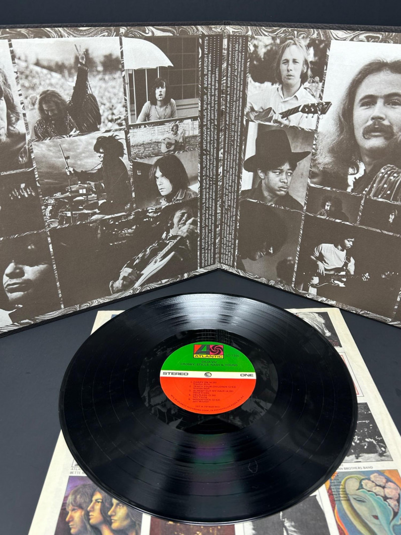 Mixed lot of 9 vintage vinyl records featuring a great selection of classic rock, funk, and soul albums from the 1970s era. A nice group for collectors, DJs, or anyone looking to expand their classic vinyl collection. Included Albums: Crosby, Stills, Nash & Young – Déjà Vu War – The World Is a Ghetto War – Deliver the Word Tower of Power – Tower Average White Band – AWB West, Bruce & Laing – Why Dontcha 1910 Fruitgum Co. – Simon Says Pictures at an Exhibition (Emerson, Lake & Palmer related album presentation style) America – Holiday Details: Format: 12” LP vinyl records Quantity: 9 albums total Various original inner sleeves and gatefold covers Mixed labels including Atlantic, United Artists, Chrysalis, etc.