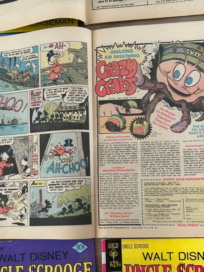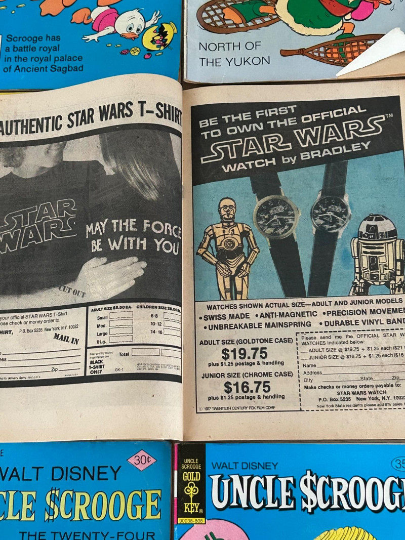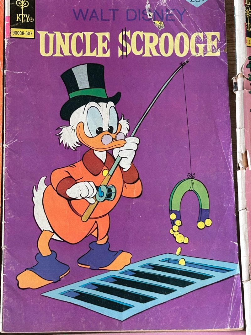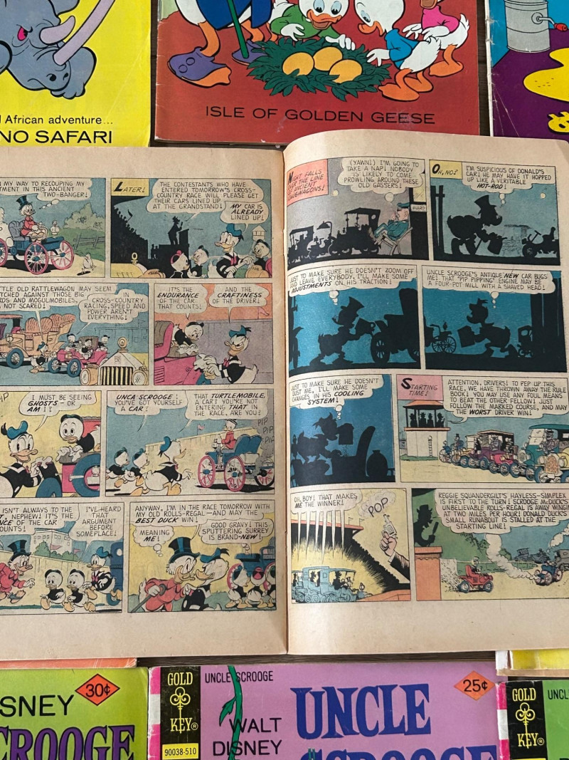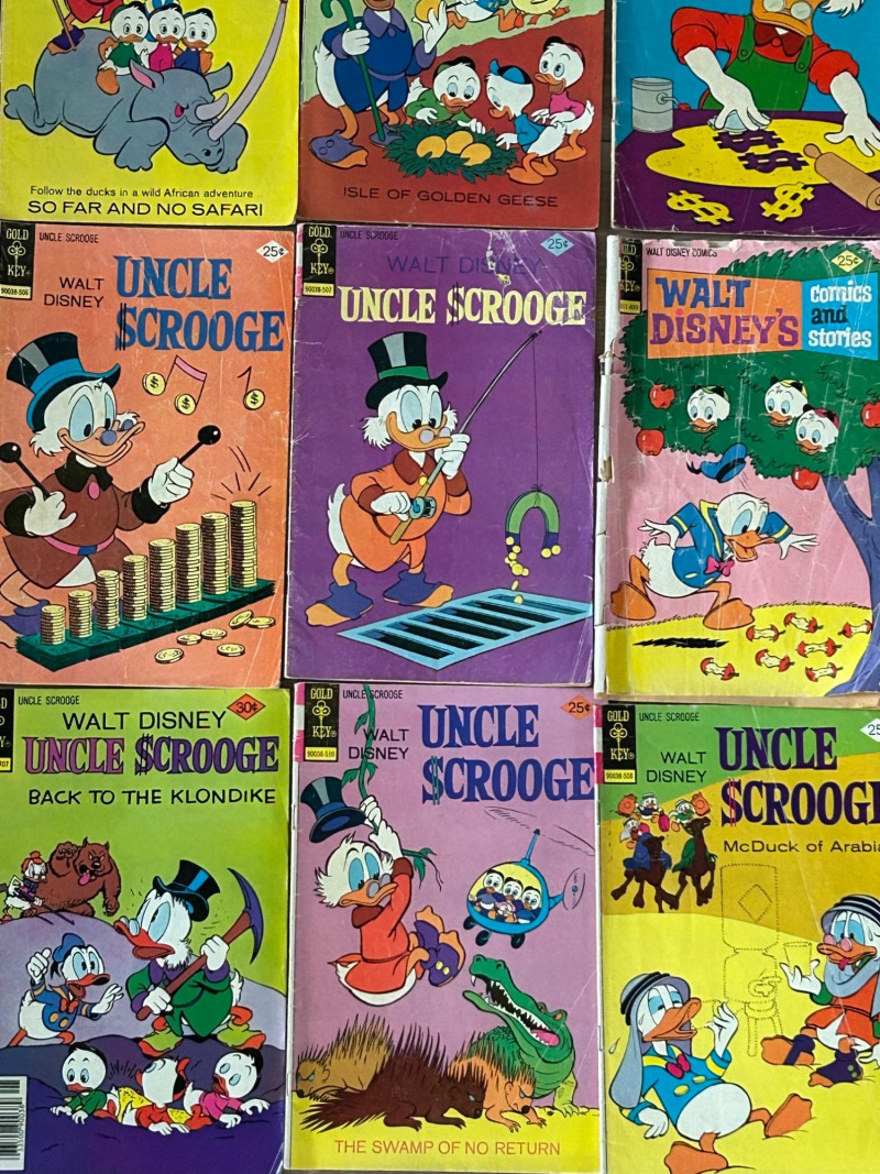 Up for auction is a lot of 20 vintage Walt Disney Uncle Scrooge comic books published by Gold Key Comics. These classic Disney comics feature the adventures of Uncle Scrooge, Donald Duck, and Huey, Dewey & Louie, with colorful artwork and fun treasure-hunting stories. These vintage Disney comics make a great addition for collectors, readers, or fans of classic Disney adventures. Included Stories / Titles: Back to the Klondike McDuck of Arabia Isle of Golden Geese The Swamp of No Return The Twenty-Four Carat Moon So Far and No Safari The Heel-less Horseman North of the Yukon Land of the Pygmy Indians Phantom of the Note Duck Walt Disney’s Comics and Stories (Scrooge appearance) Plus additional Uncle Scrooge adventures