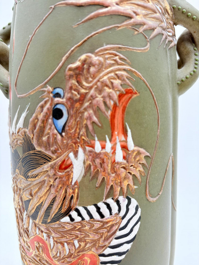 Japanese dragon vase. Exquisitely rendered scales, vivid color, and intricate