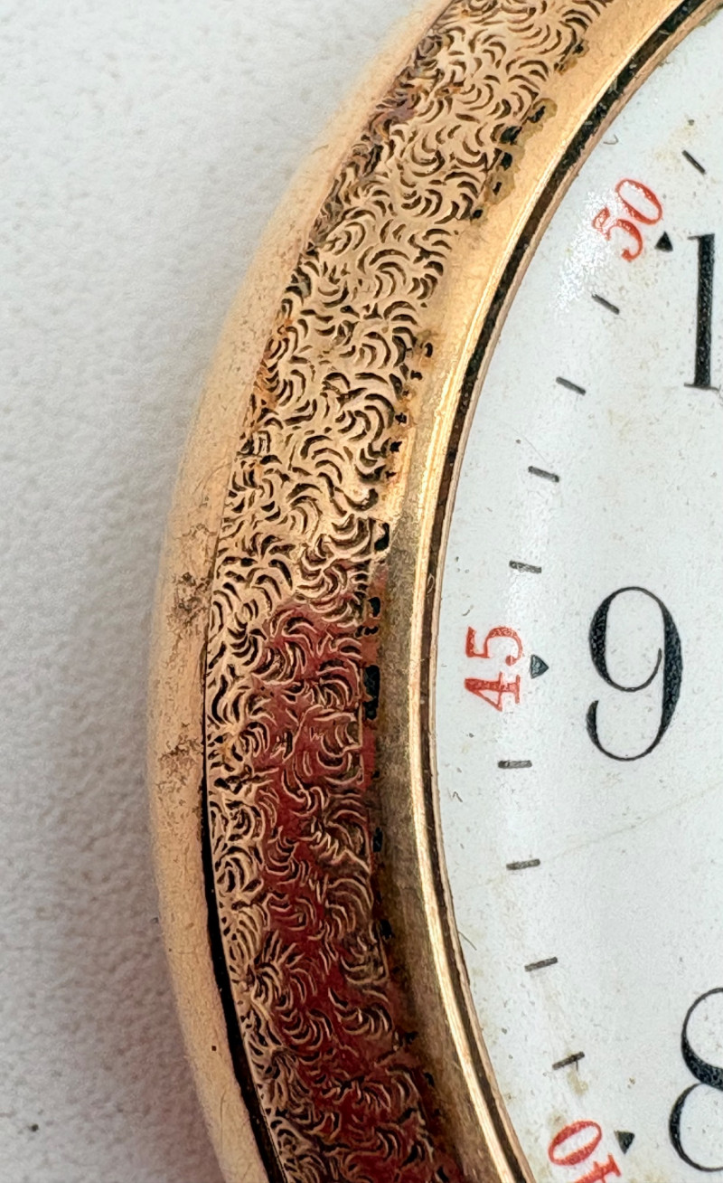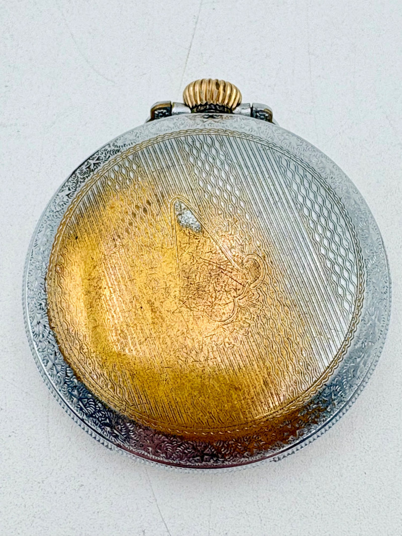 Really lovely pair of antique pocket watches - delicate incising around the case edges and the on the back cover; absolutely beautiful metalwork. The Wuestenan appears to be working, but the Elgin is not. (the Elgin also needs a replacement crystal). We are guessing these are from the early 1900s.