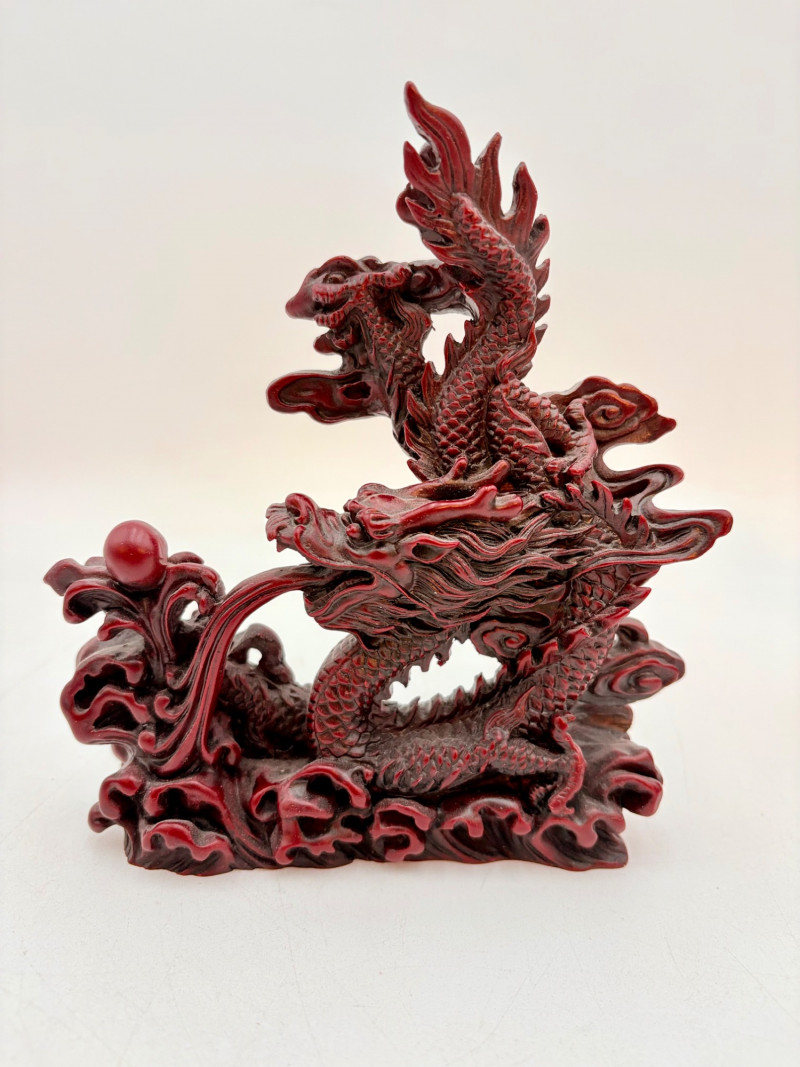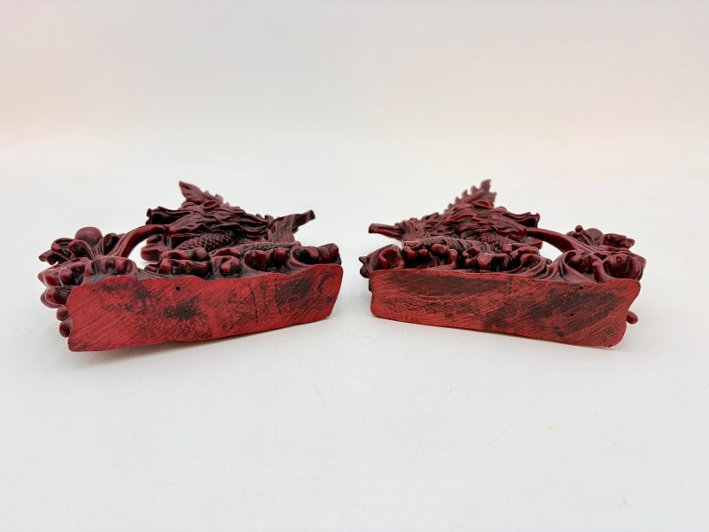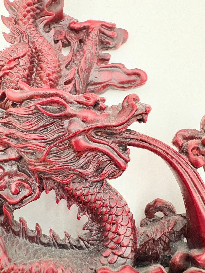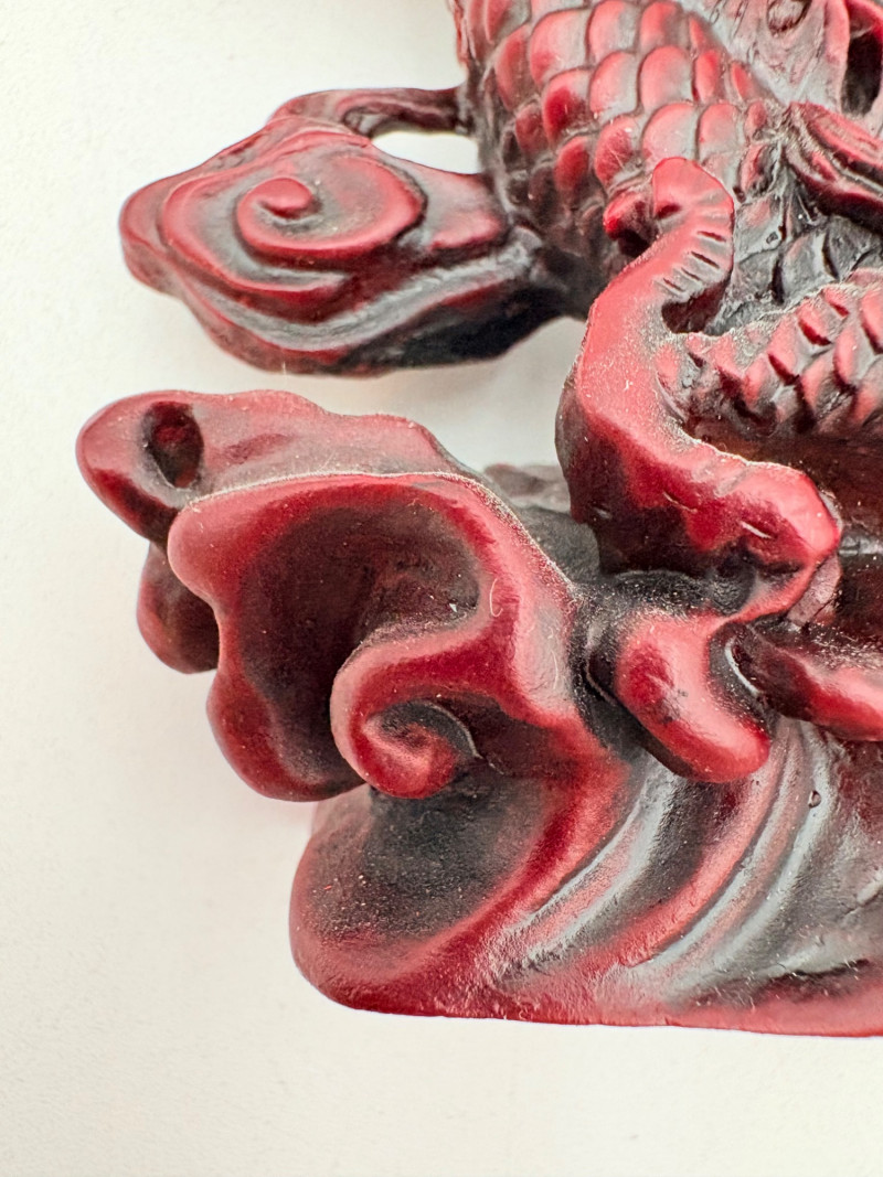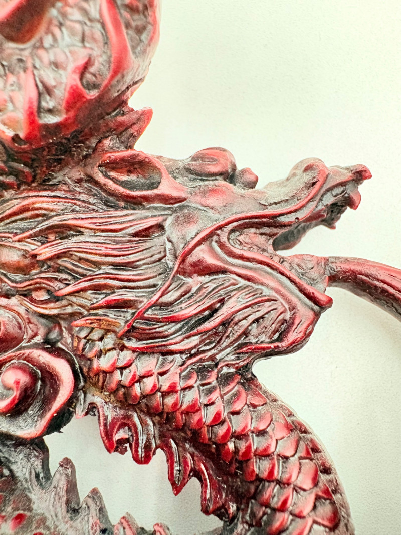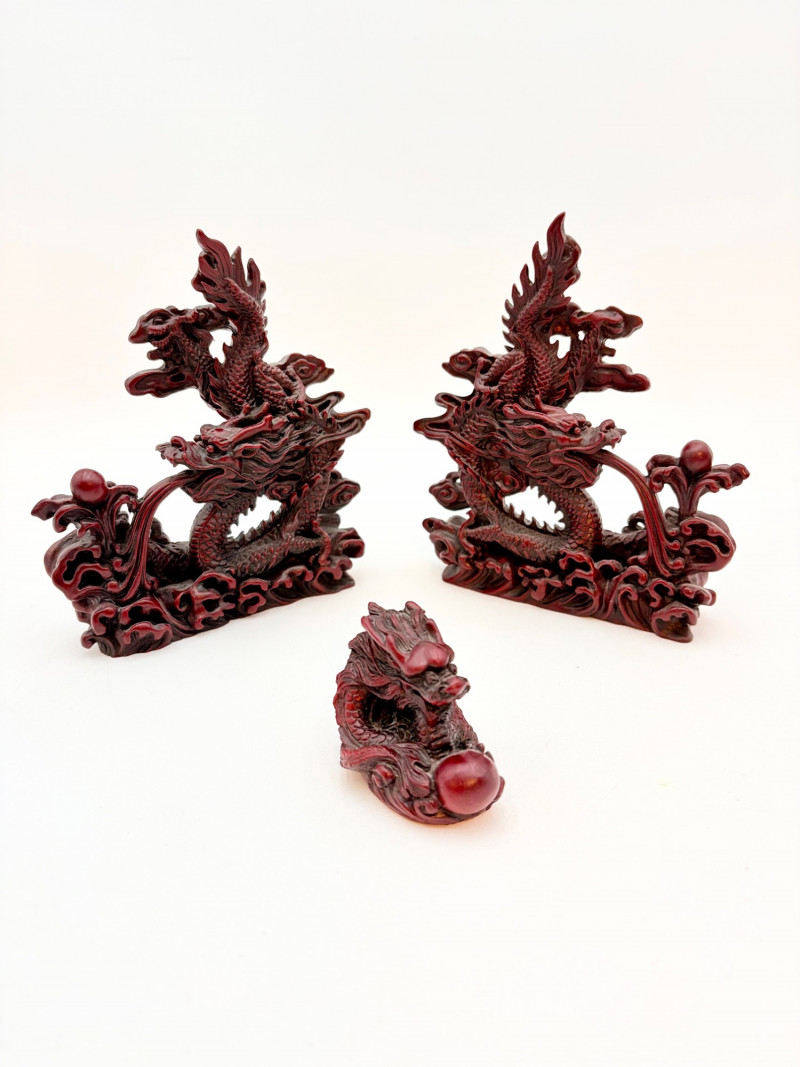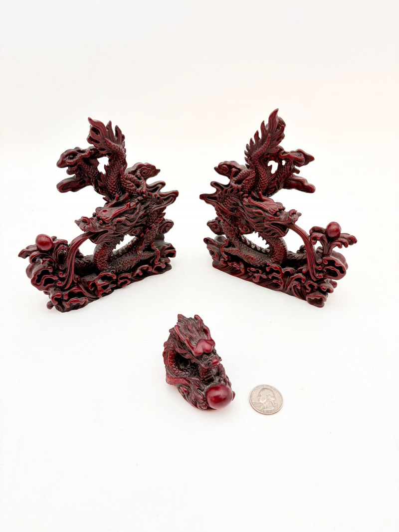3 dragon themed pieces with similar styling and heft in rich red.