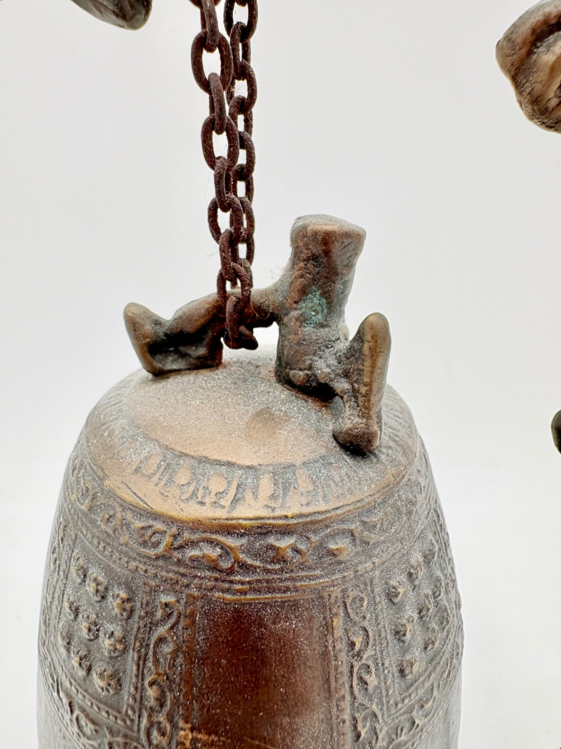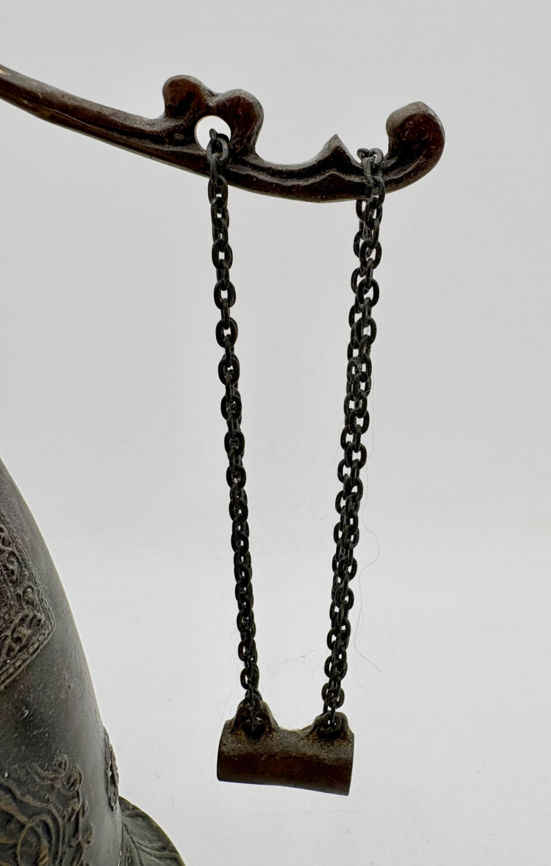 branch section suspended on chains serve as a mallet for the bell. Gorgeous