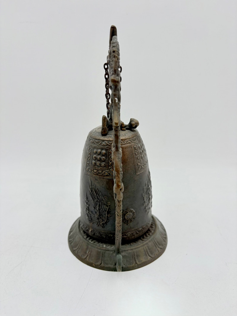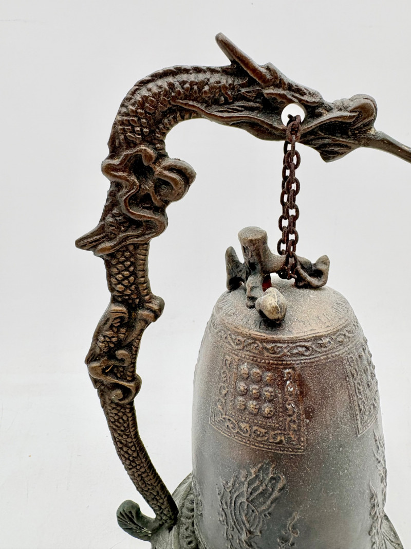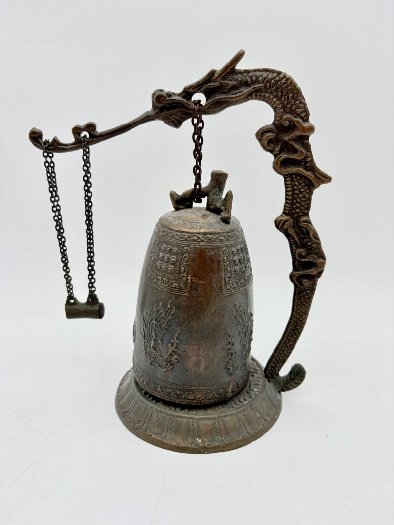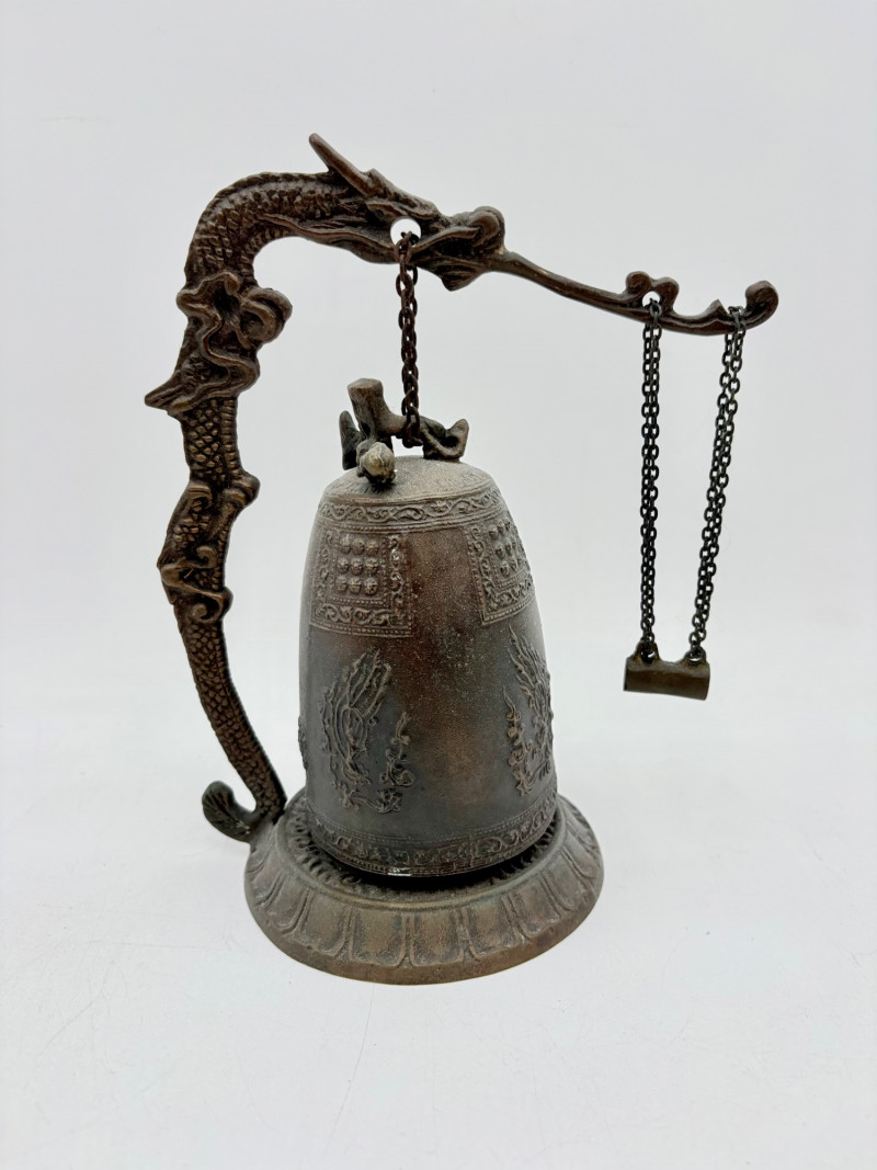 actually an antique. It is very heavy cast metal with a dragon support and suspended bell. A tree