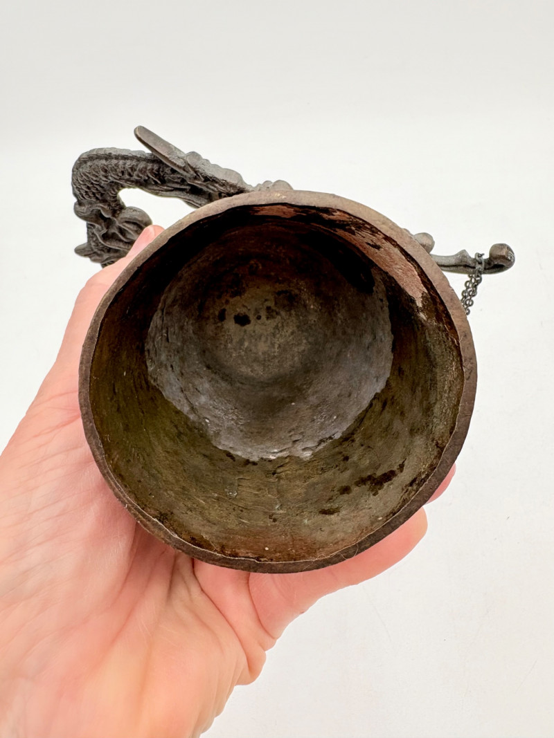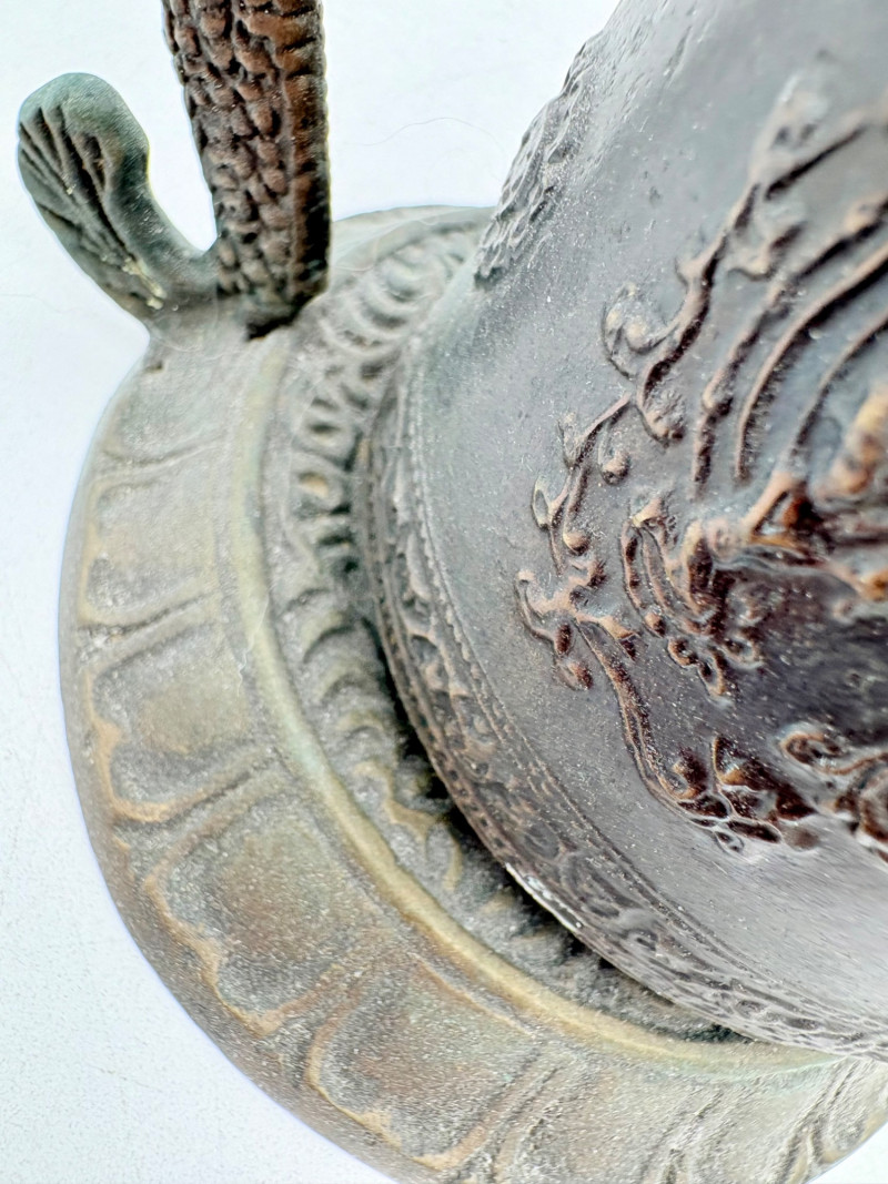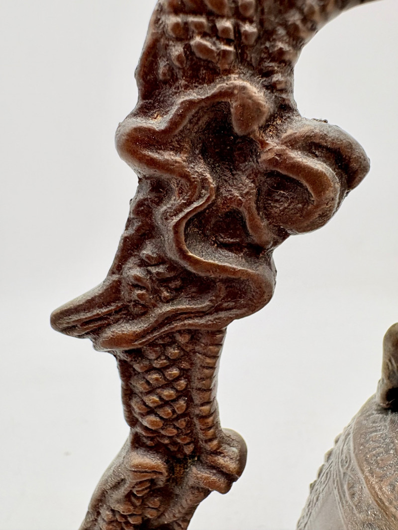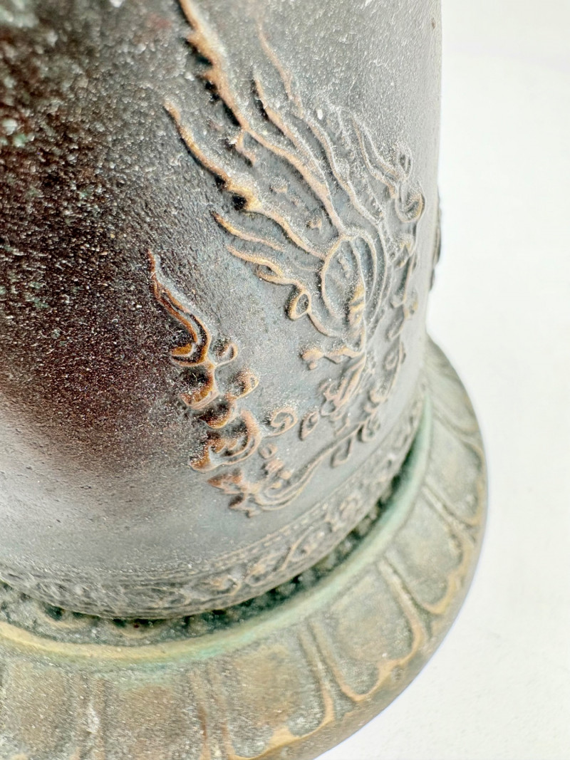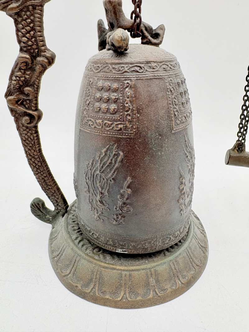 actually an antique. It is very heavy cast metal with a dragon support and suspended bell. A tree