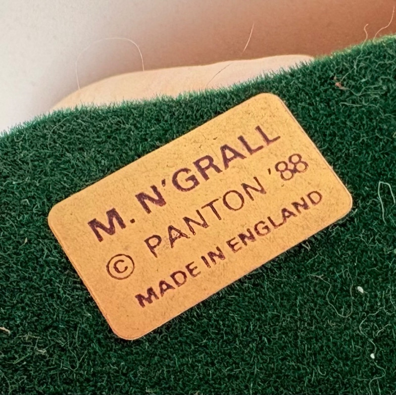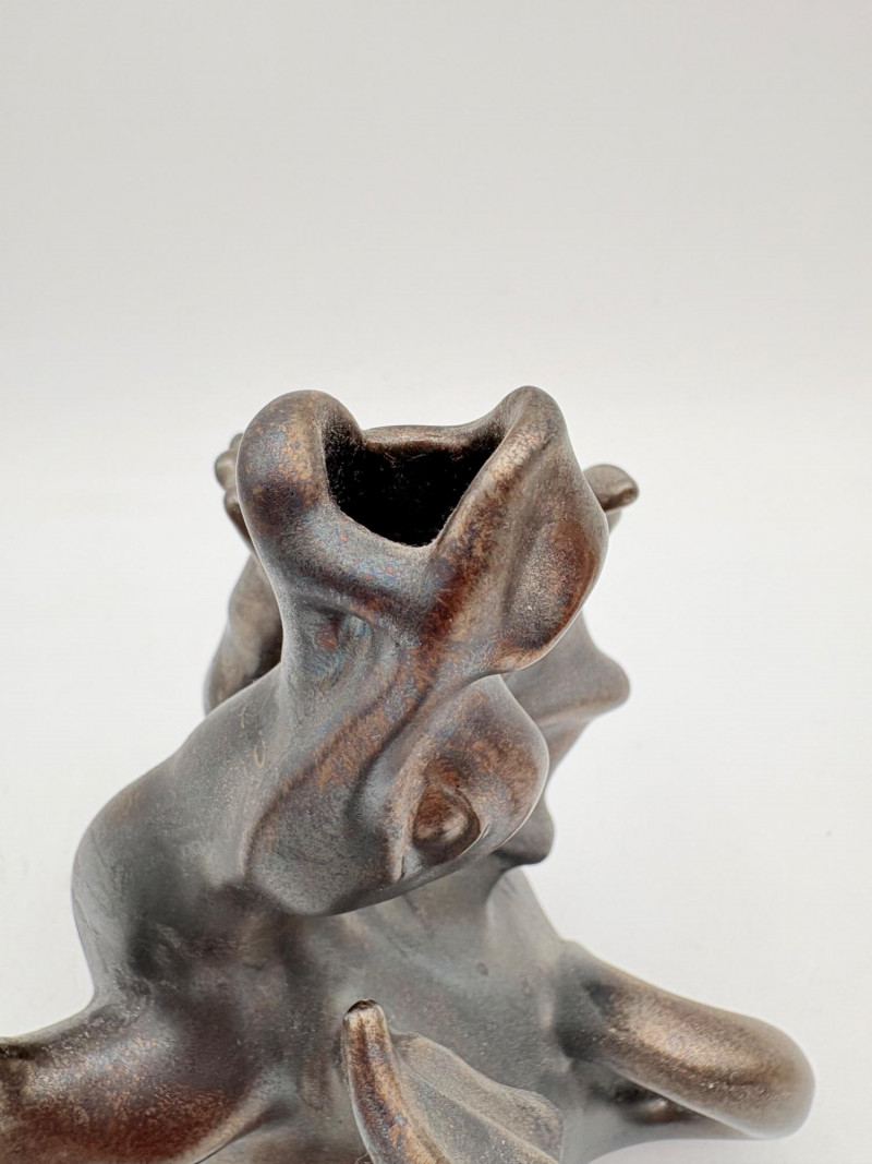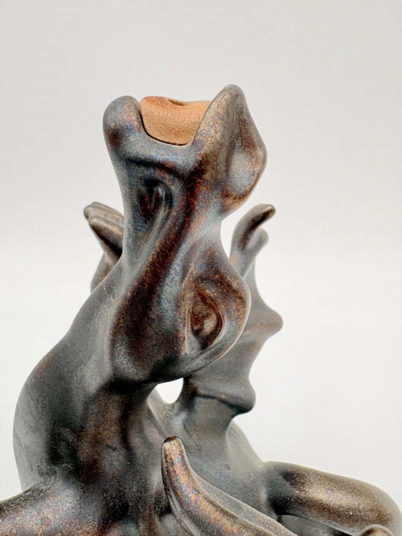 crystal necklace. From Panton International of England. Measures 7” H. - Artware ceramic pitcher with slightly iridescent grey glazing has removeable stopper in mouth with steam hole. Made in the USA.