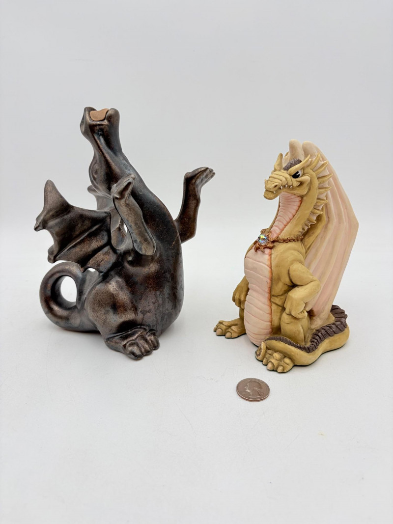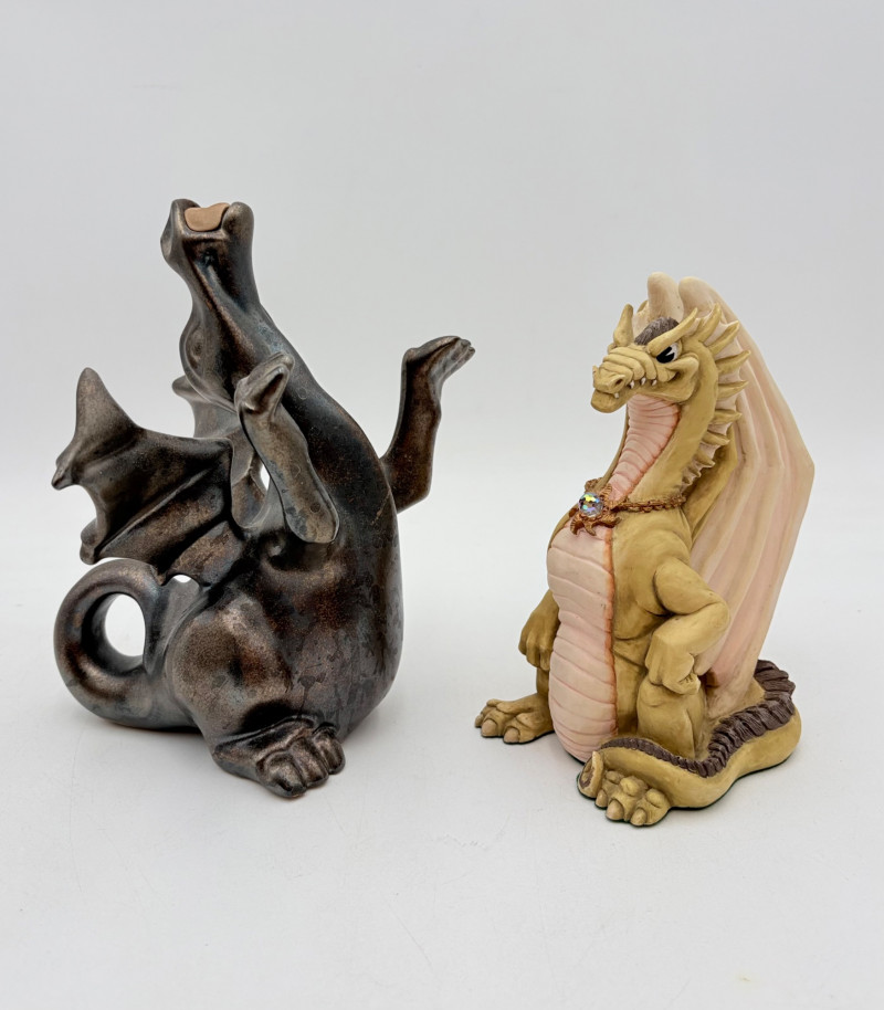 Pair of contrasting dragons: - World of Krystonia resin N’Grall dragon with