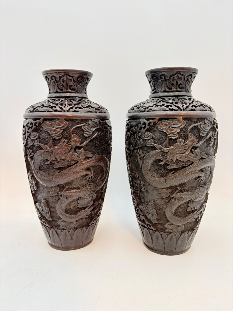 Lot # 35 - Pair of Red Dragon Vases