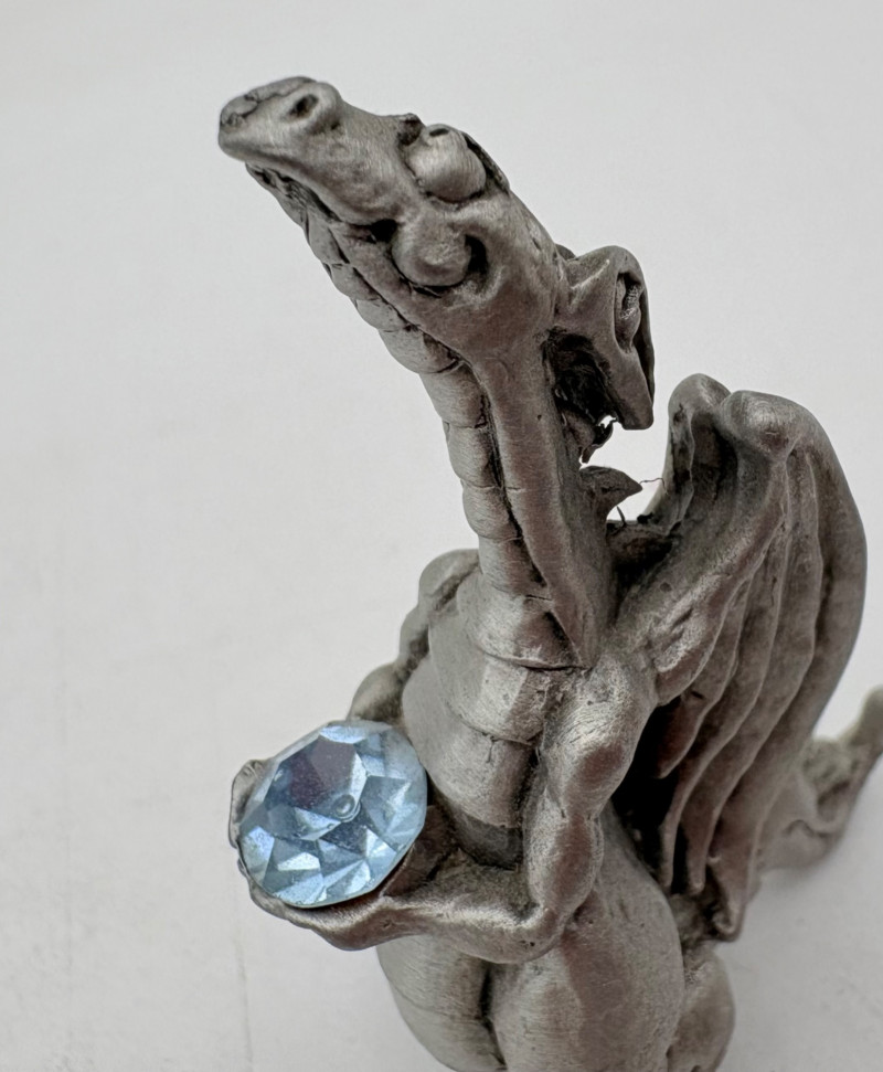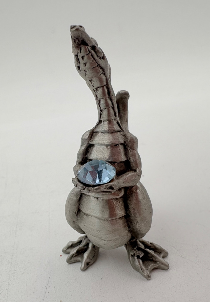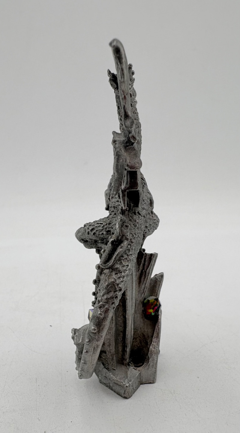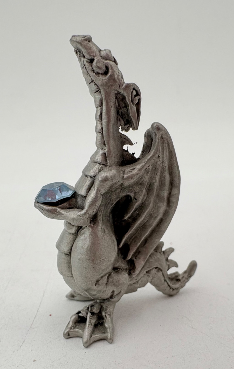 Pewter dragon trio: - Heavily incised dragon on clear orb grasping a