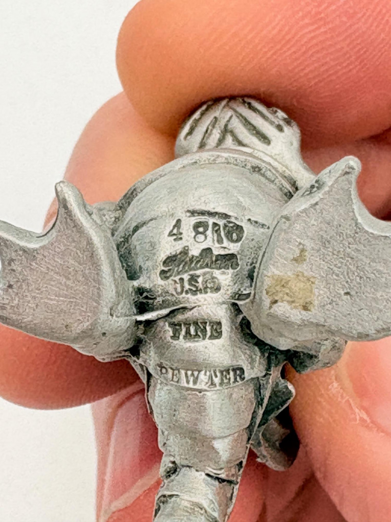 Measures 3.5” H. From James Casey at Perth Pewter.