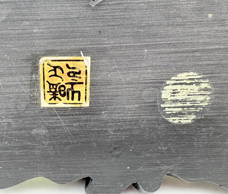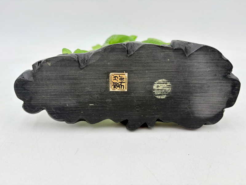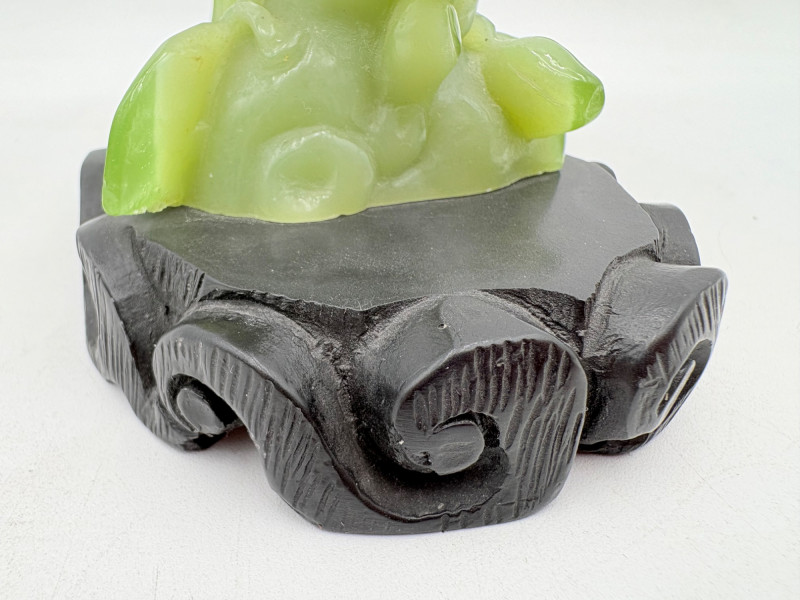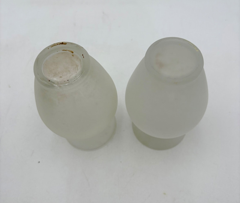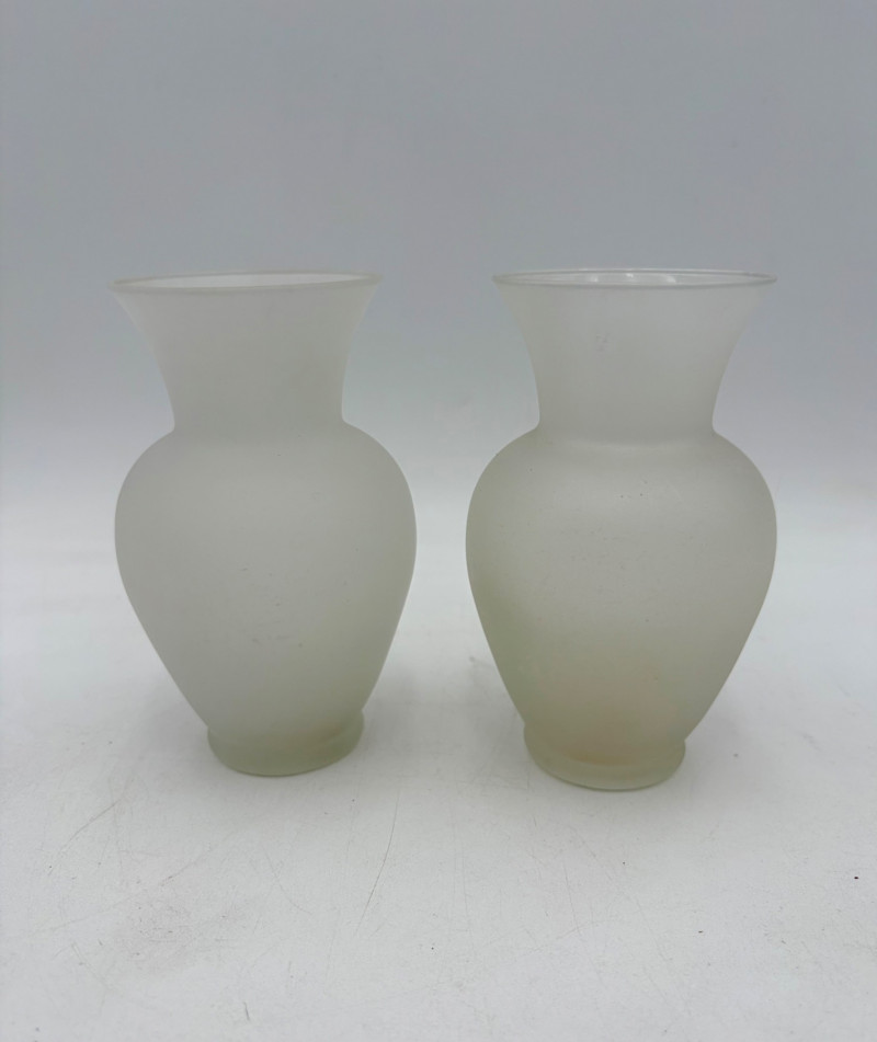 black base. Very traditional rendering of the subject – we think this is probably from the late 1960s or early 1970s. Measures 11.5” H x 9” W. - Pair of frosted glass decorative vases. Measure