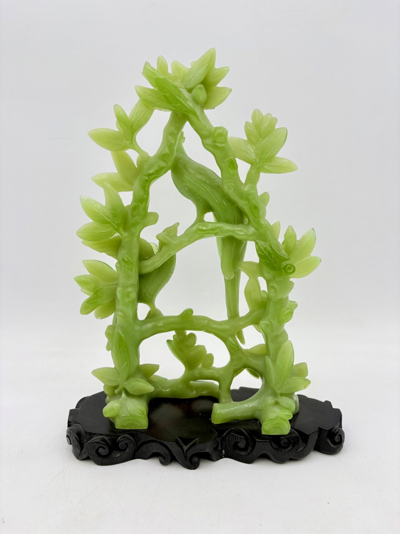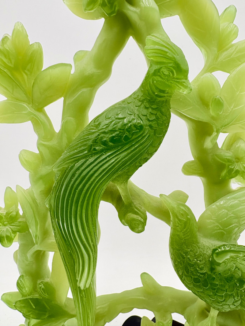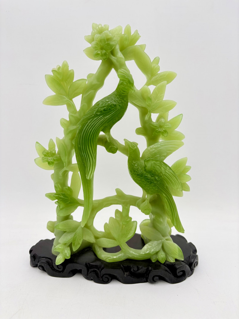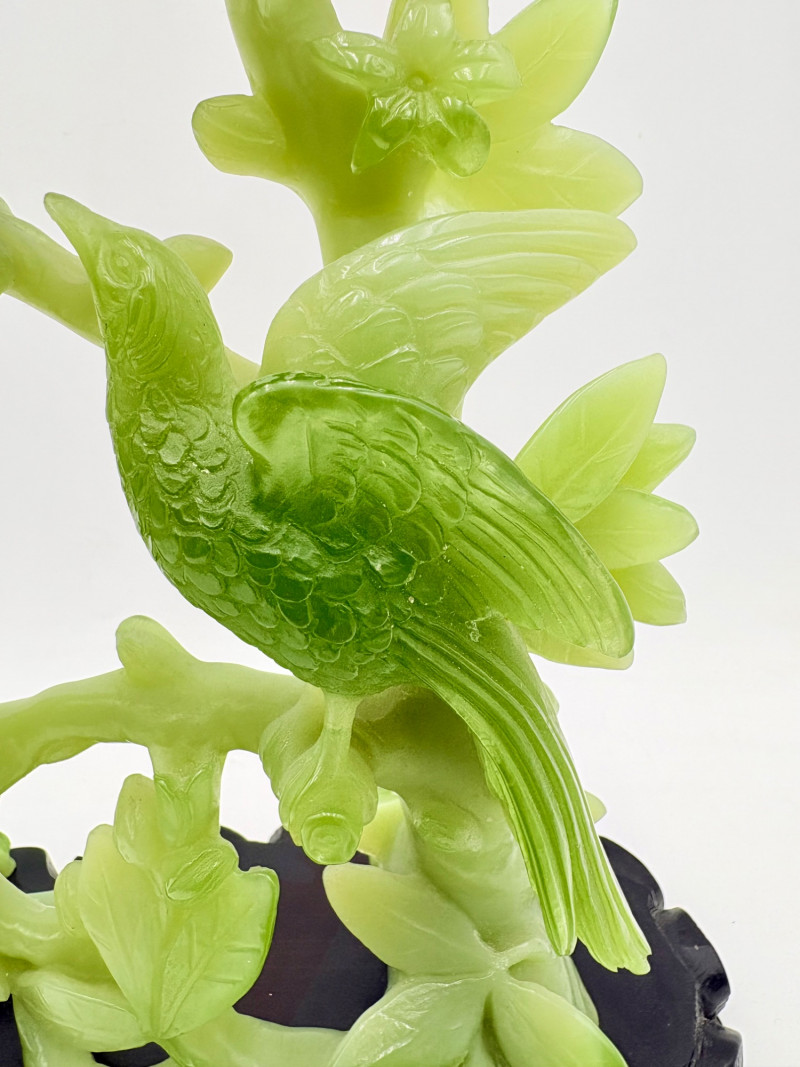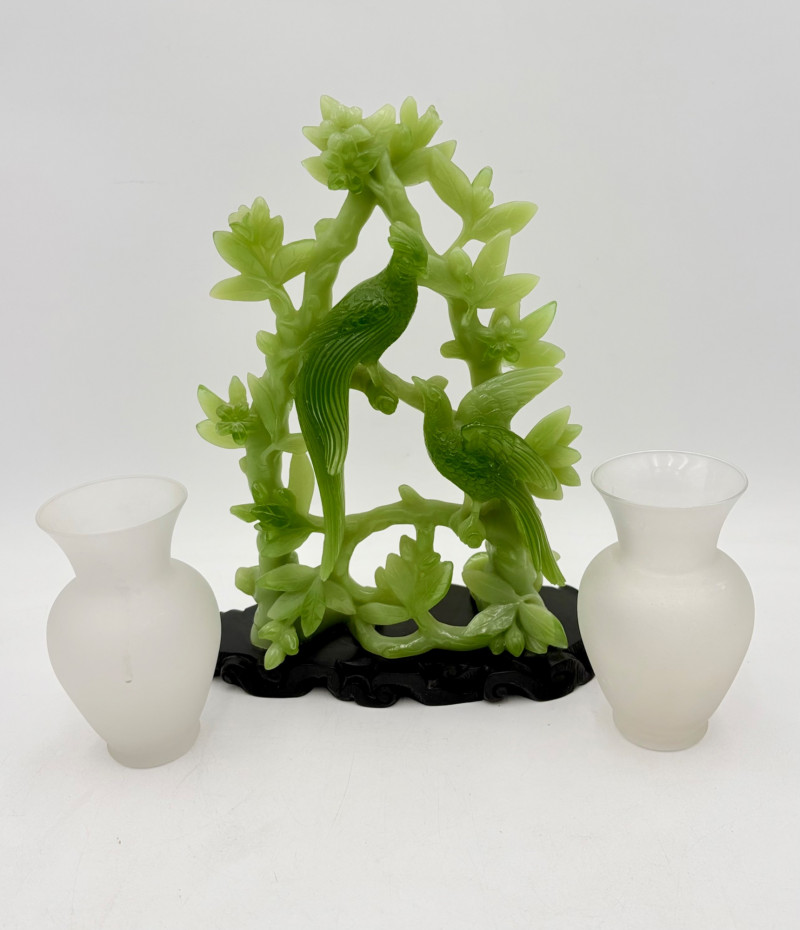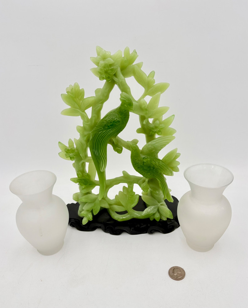 Lot # 56 - Vintage Carved Bird Sculpture & Glass Urn Pair