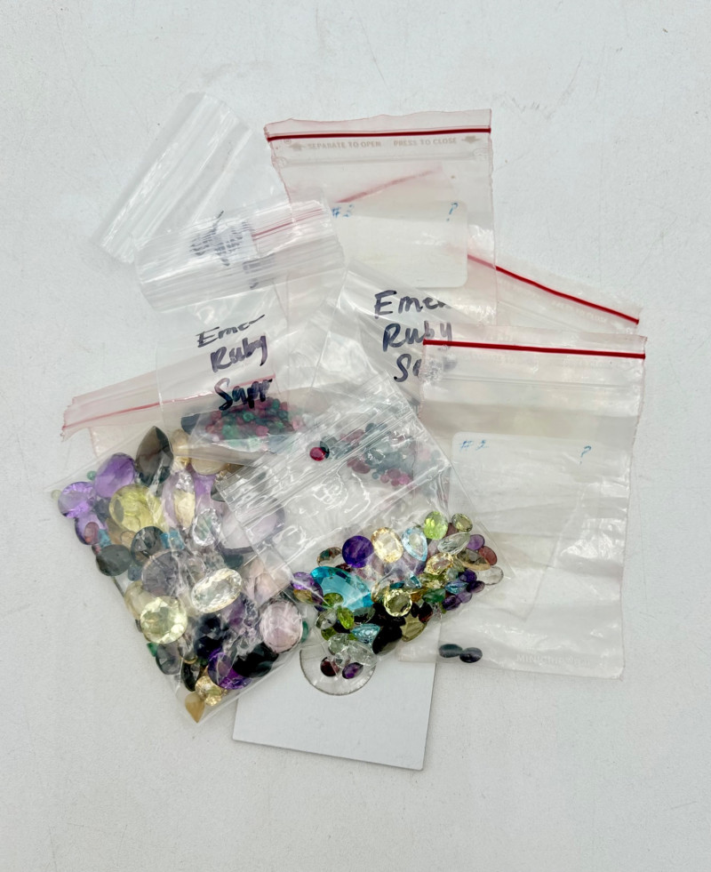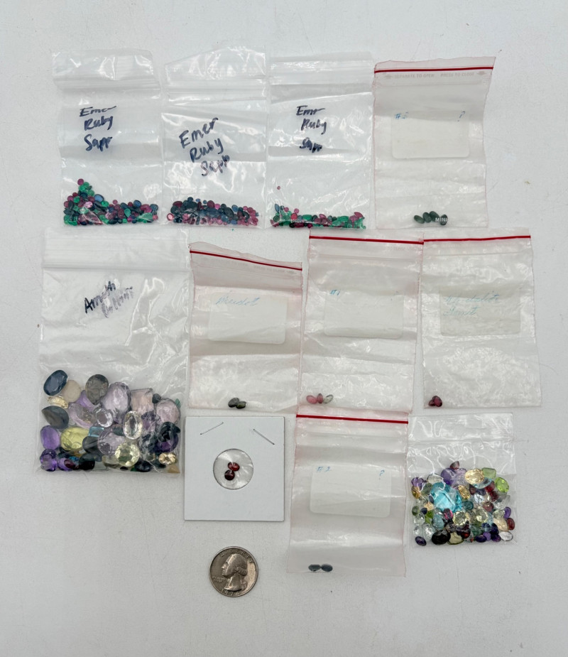 Group of loose stones - great for replacing missing ones on your sculptures or for creating something new. Most are shaped and some may be semi-precious, but none of exceptional value in terms of being a diamond or such. Terrific crafting/repair pieces. What you see is what you get.