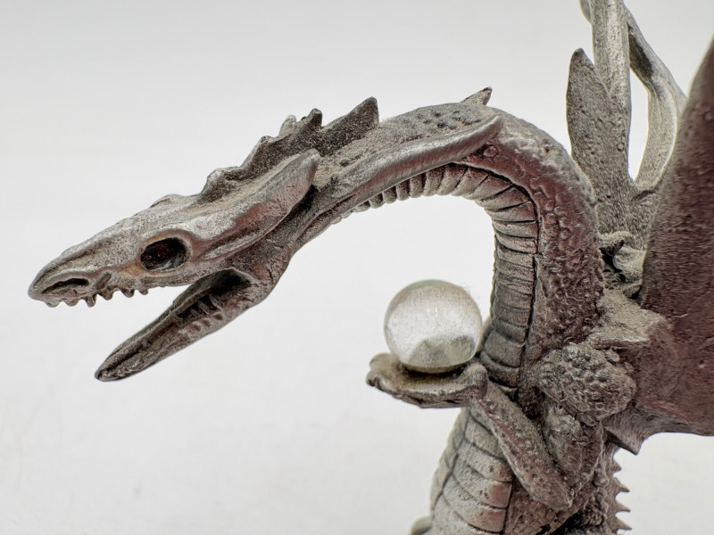 - Dragon on his horde grasping a clear orb. Measures