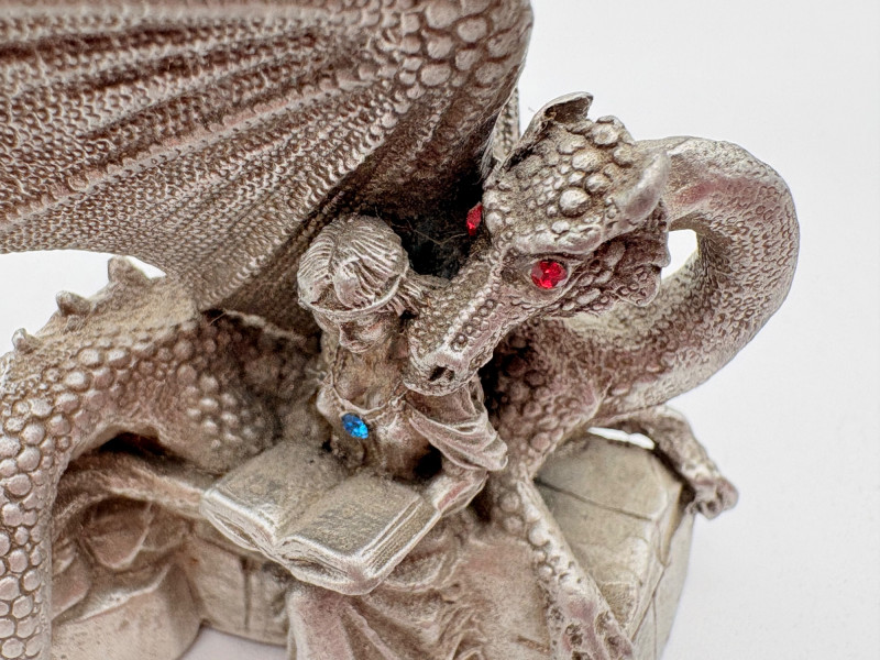 - Dragon reading with his girl. Measures 2.5” H.