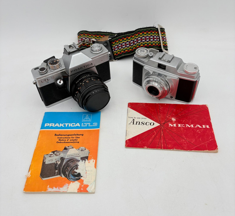 Praktica camera & Ansco Memar cameras. Neither tested for function. - German-made Praktica LTL 3 35mm camera. Lens