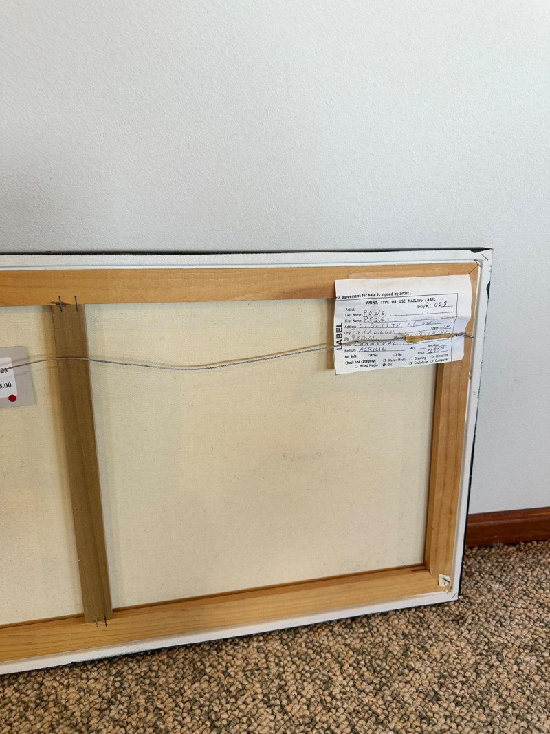 Signed ROWE at lower right. Peggi Rowe is a Washington‑based artist and longtime art instructor, active in the South Sound region. She is associated with the Fred Oldfield Western Heritage & Art Center in Puyallup, where she has taught art for many years. Her work appears in local exhibitions, community art events, and charitable projects. She has also authored and illustrated at least one book, participating in public book signings and donating proceeds to regional causes.