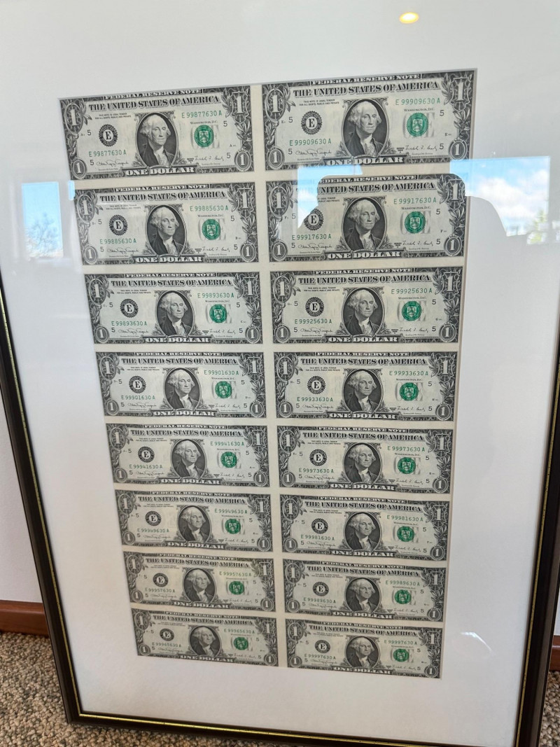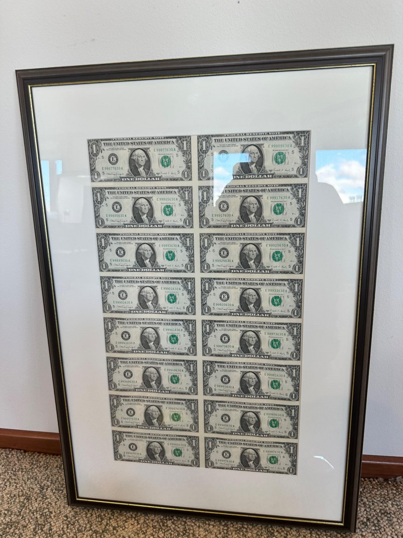 Lot # 11 - Dept. Of Treasury 16 One Dollar Bills Framed 1988