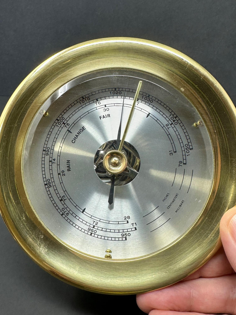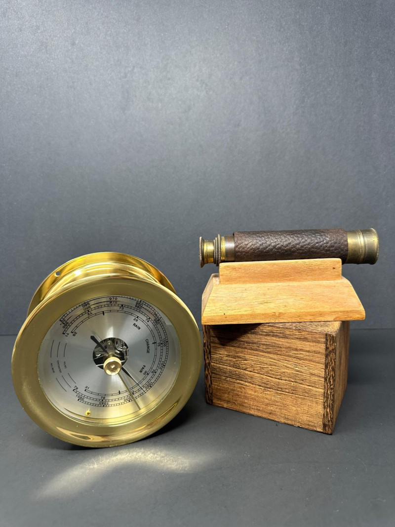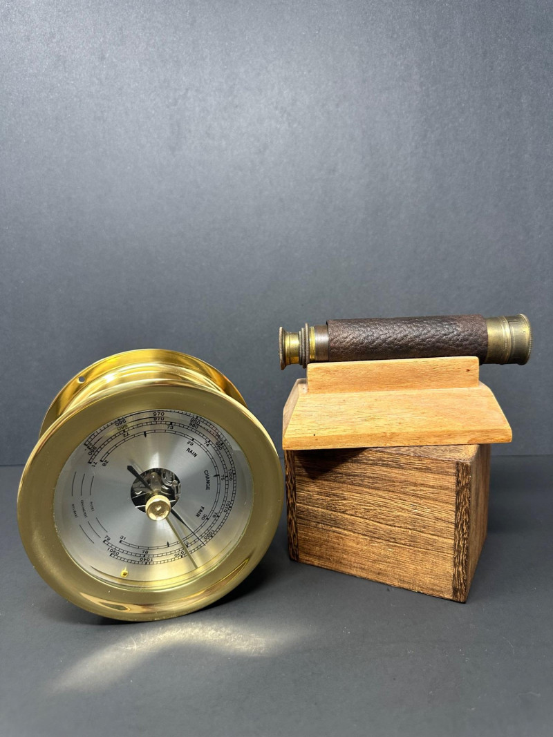 Lot # 15 - Vintage Brass Analog Barometer and Monocular