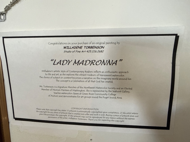 Willadene Torbenson is a Pacific Northwest artist known for her contemporary realism with dimensional, mixed‑media watercolor techniques. Her work often blends human figures with botanical forms, exploring themes of identity, growth, and the deep connection between people and nature. Torbenson’s pieces are recognized for their layered textures, sculptural qualities, and warm, organic palettes. Her art has been exhibited regionally and is held in private collections throughout the Northwest, appreciated for its emotional resonance and innovative use of watercolor as a three‑dimensional medium.