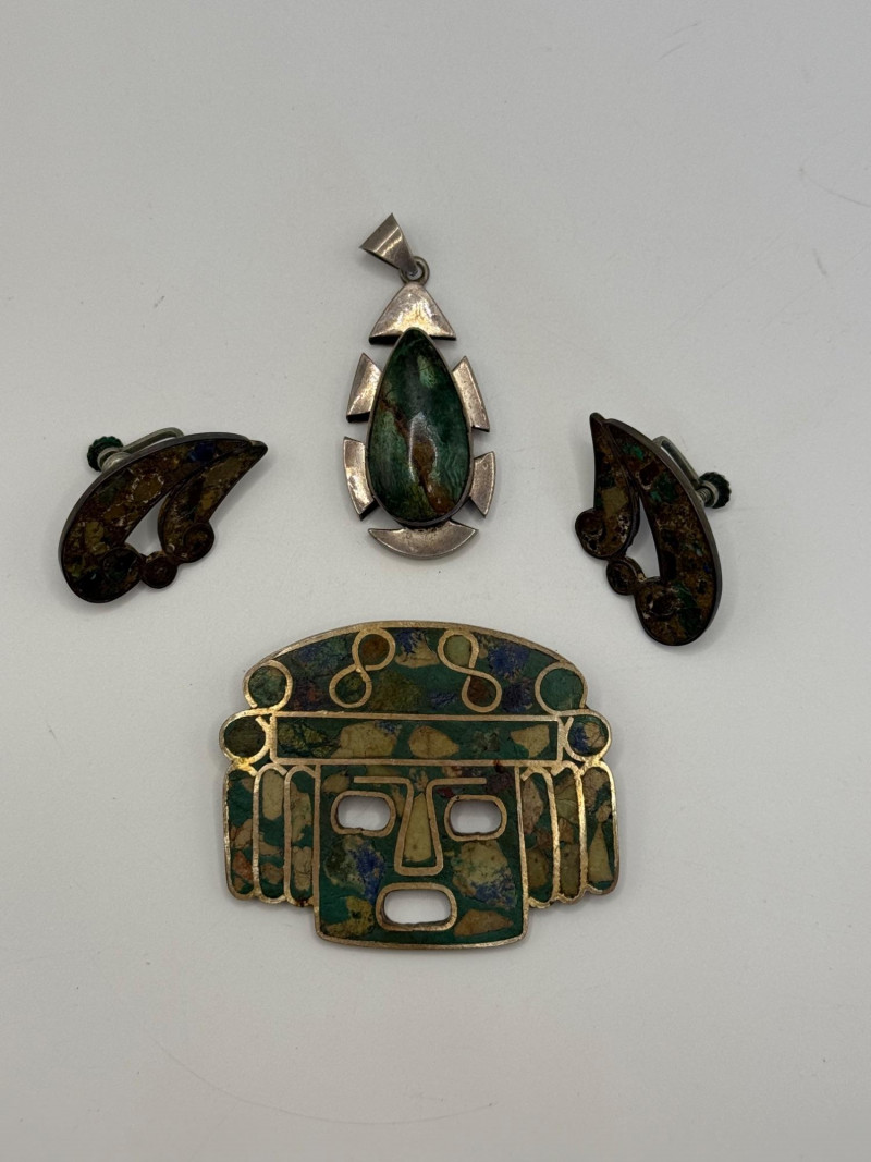 Lot # 4 - Sterling Mexico Pendant. Brooch, and Earrings