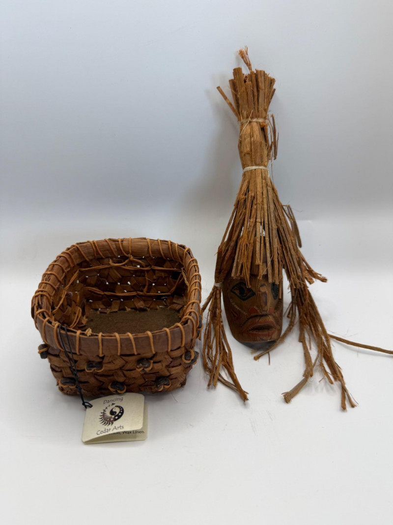 Lot # 36 - Makah Arnie Smith Mask and Marlien Hennen Cedar Basket