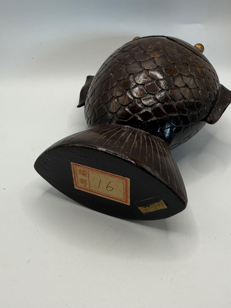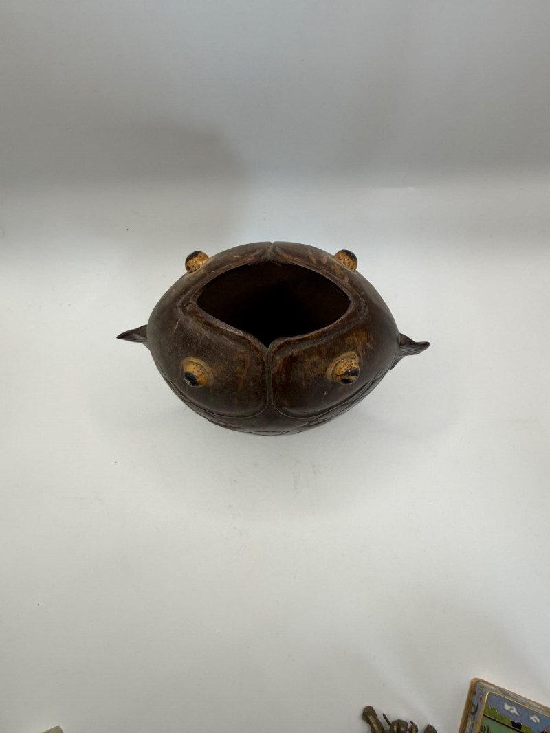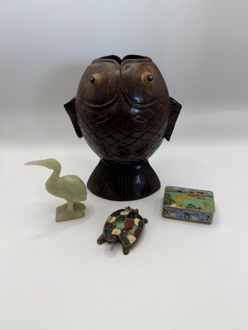 Lot # 43 - Asian Coconut Fish, Stone Bird, Cloisonné Box and Turtle