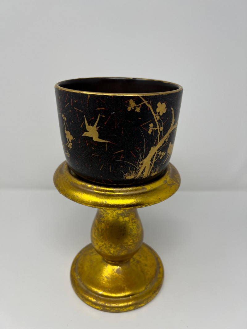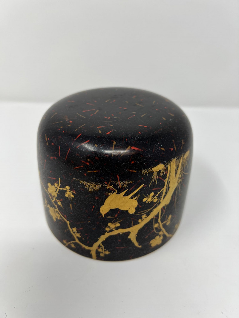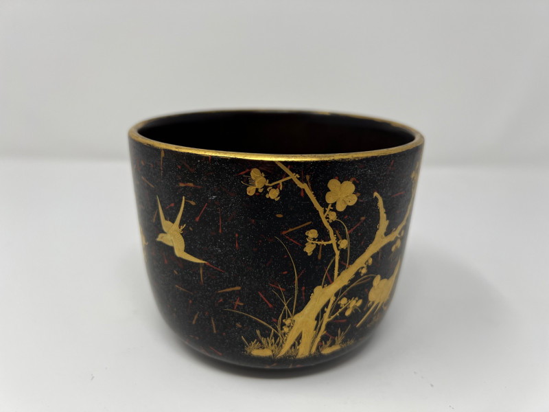 Lot # 81 - Japanese Black Lacquer Bowl w/ Gold Birds – Nashiji Speckled Finish