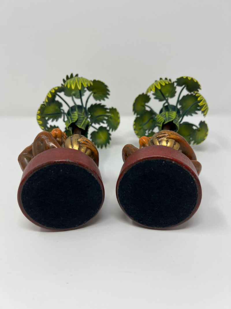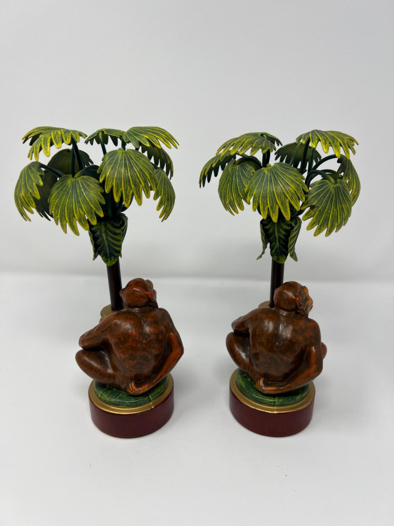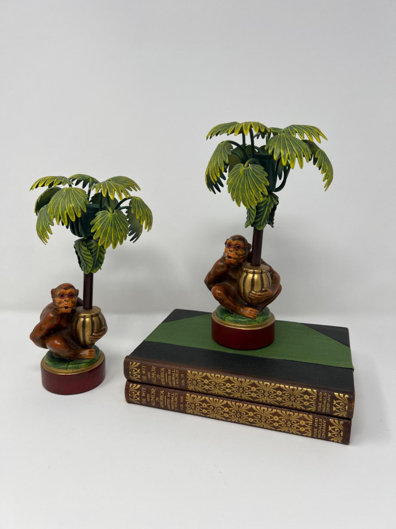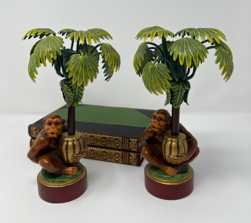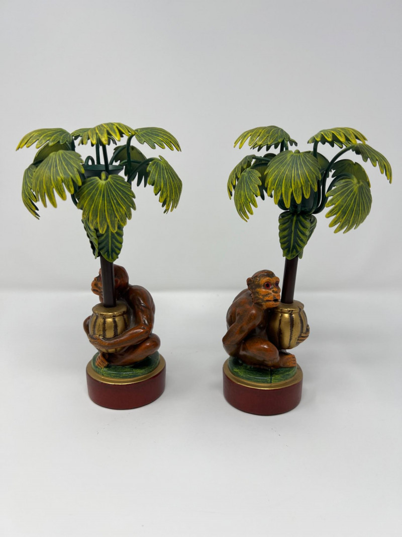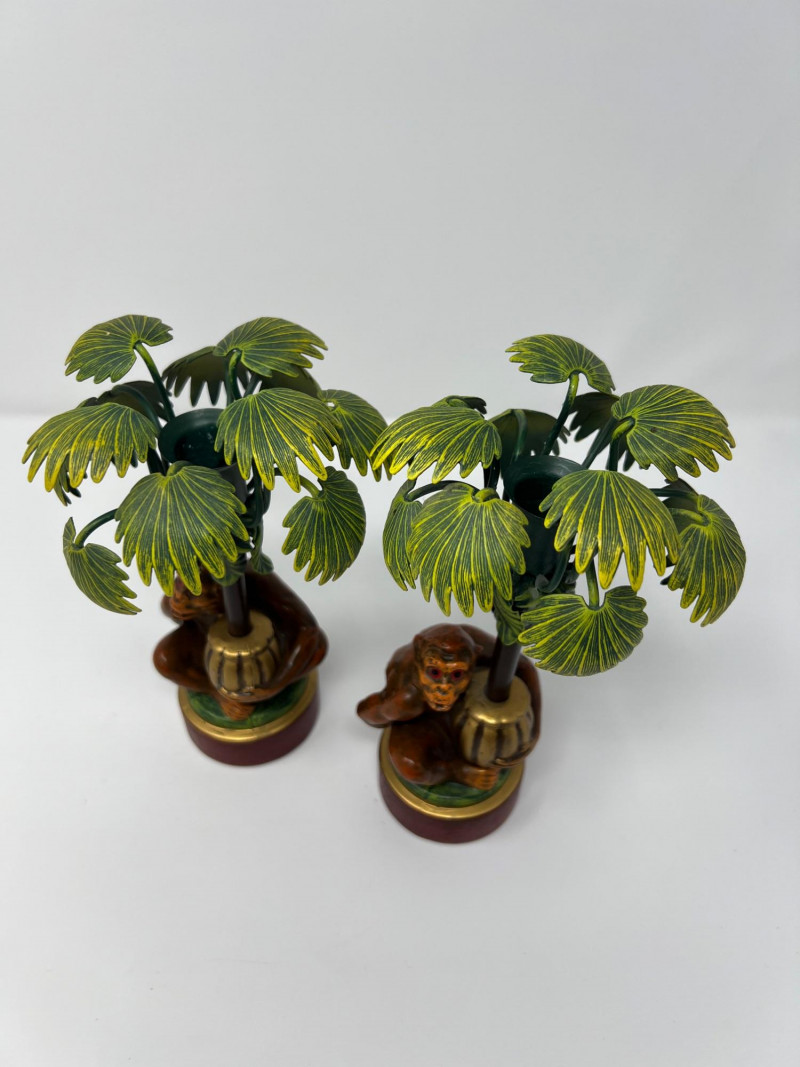 Lot # 4 - Vintage Pair Petites Choses USA Monkey & Palm Tree Candlestick Holders
