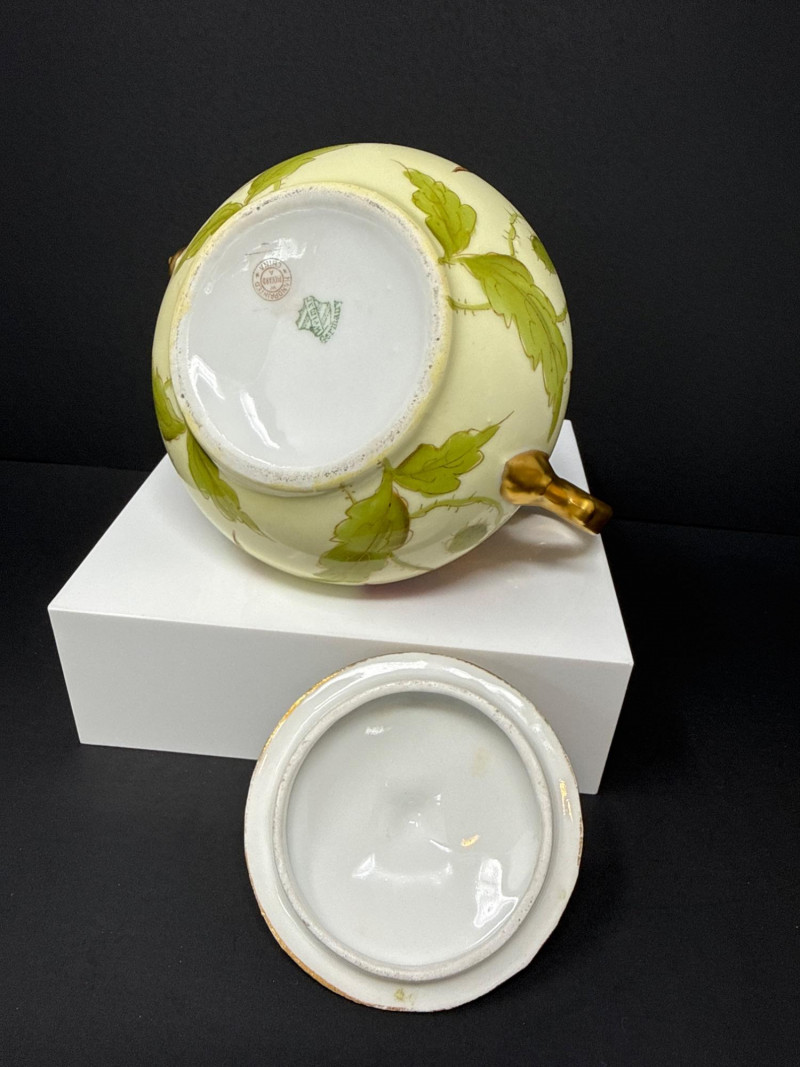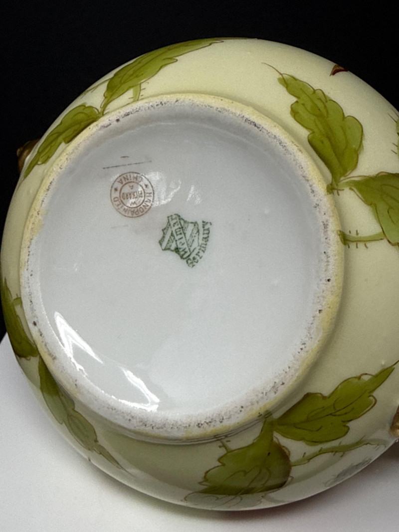 Lot # 7 - Weimar Germany Hand‑Painted Porcelain Sugar, Creamer & Salt/Pepper Set