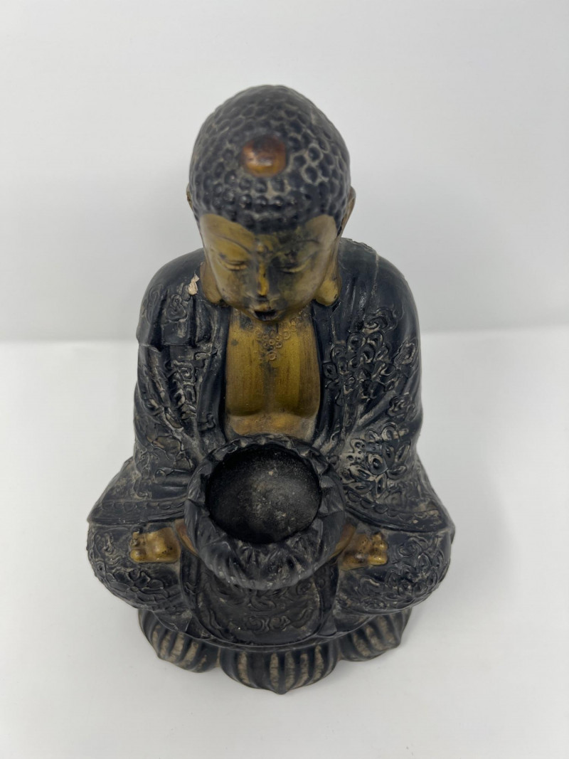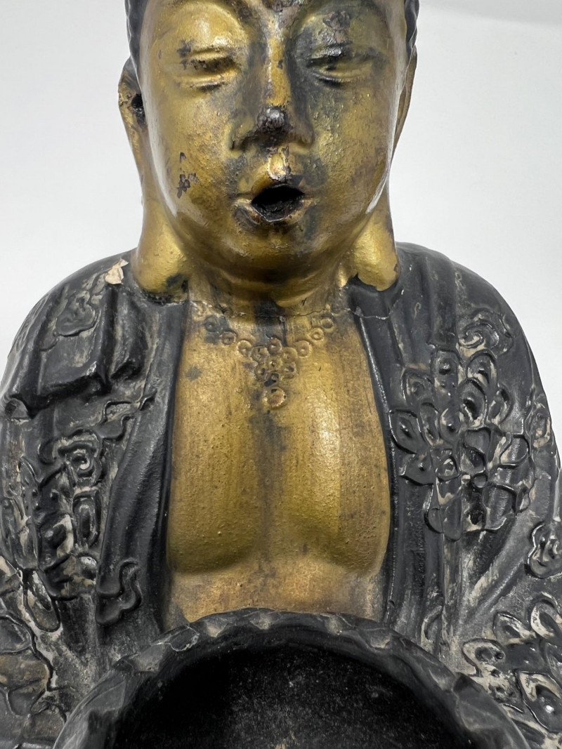 Lot # 14 - Vintage Chinese Buddha Figural Incense Burner Censer Lotus Base 10.25”