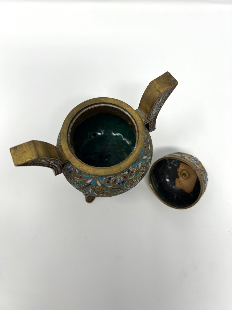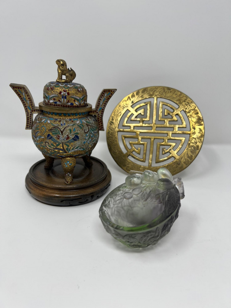 Lot # 18 - Asian Decorative Lot – Cloisonné Jar, Brass Trivet & Crystal Dish