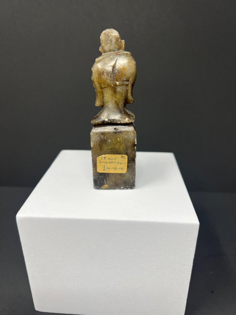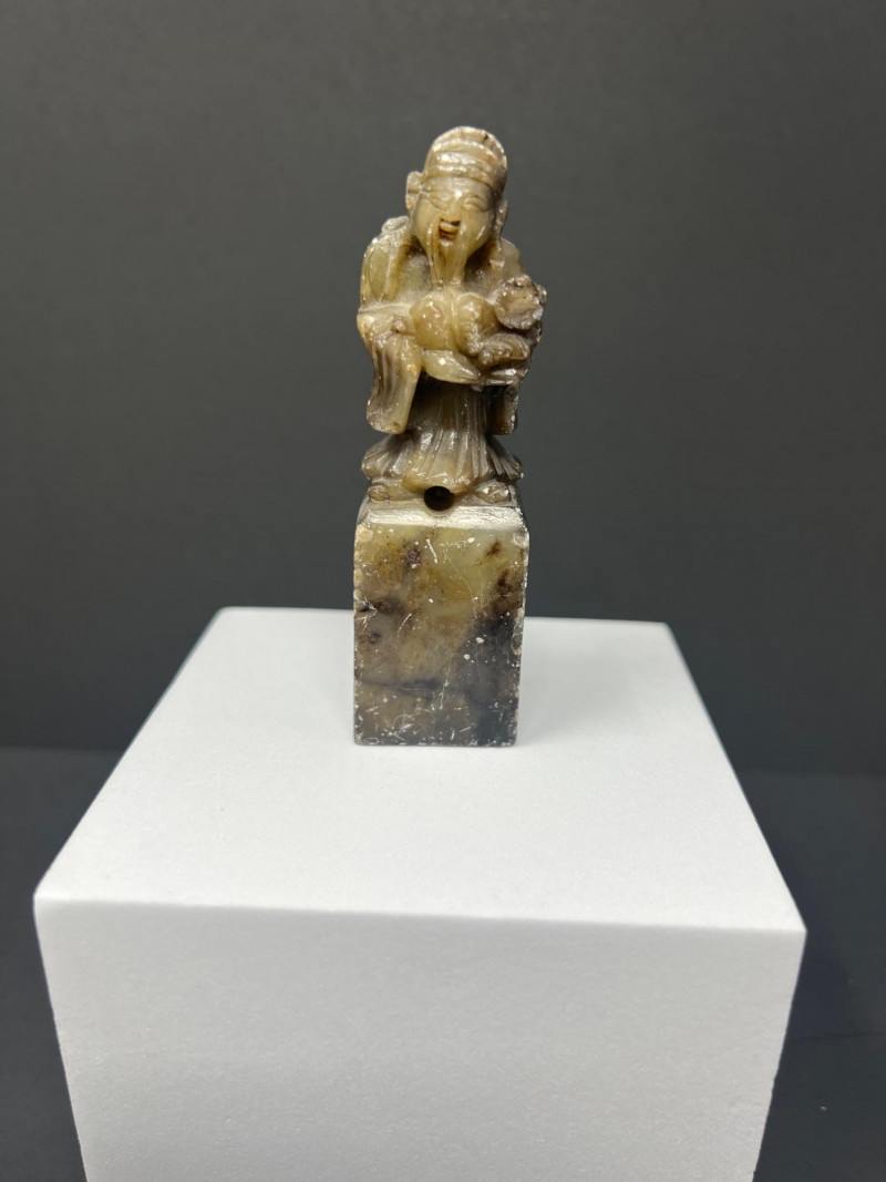 Lot # 37 - Chinese Brass Tea Caddy Pair, Soapstone Monk & Parasol