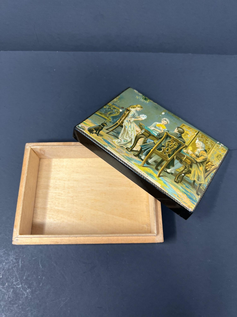 Lot # 40 - Victorian Parlor Lot – Worcester Plate, Lady Vase & Card Box