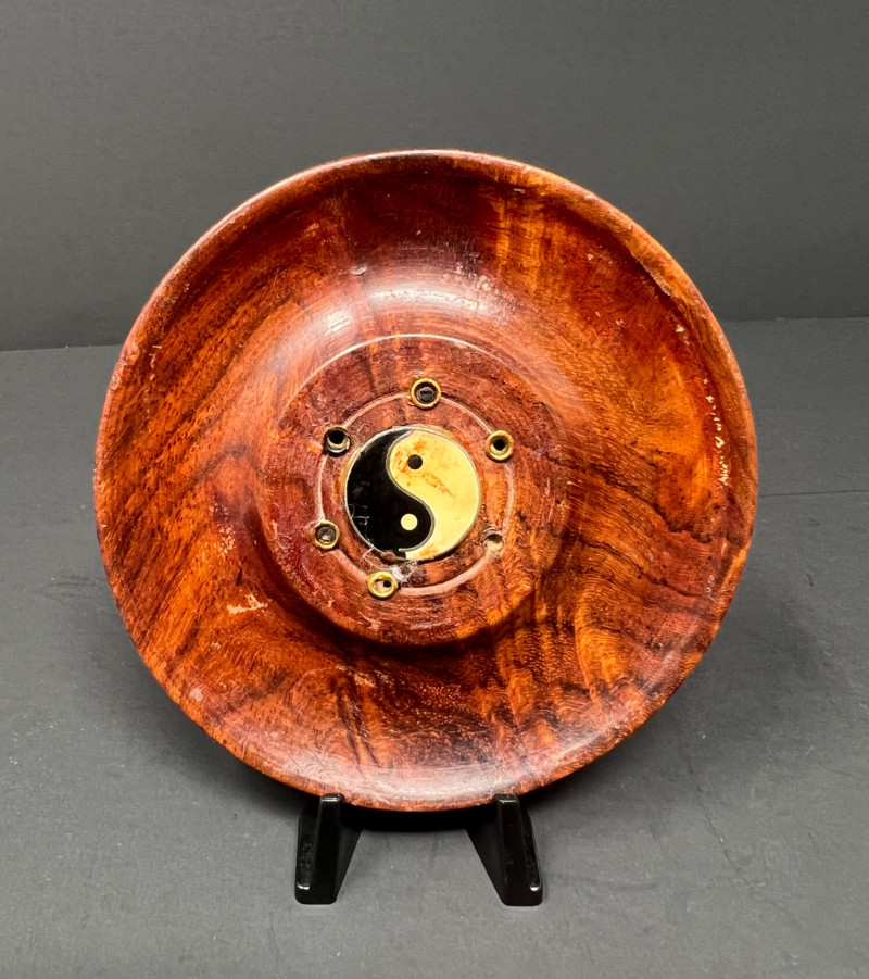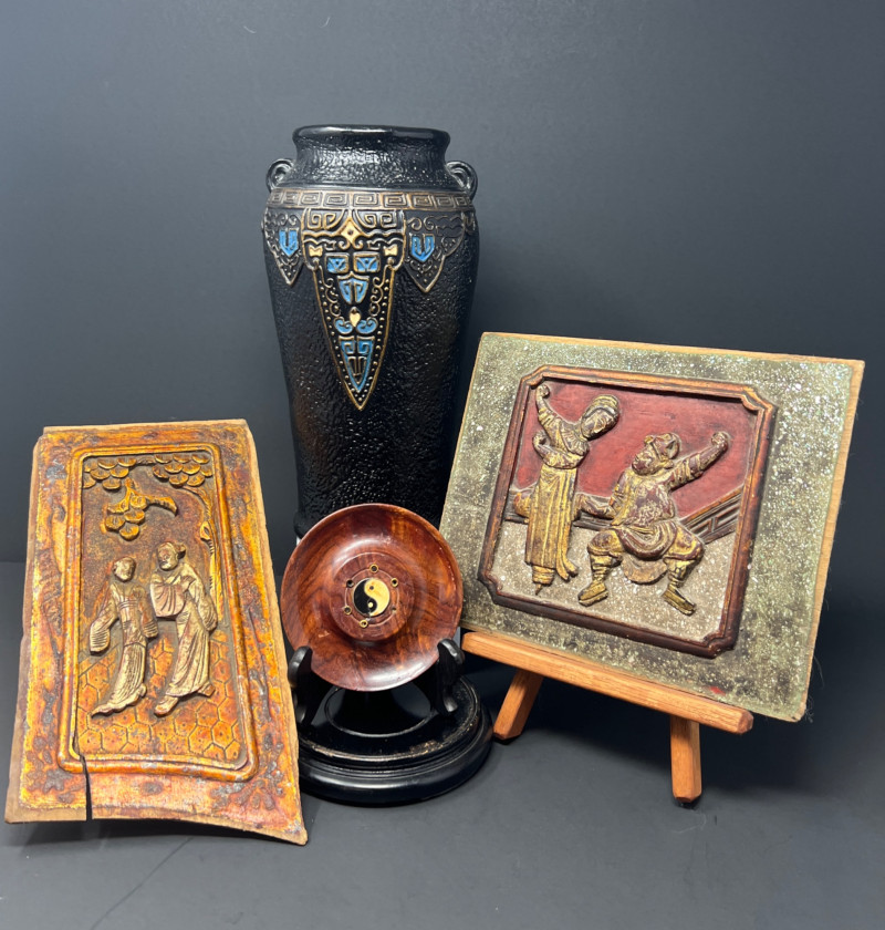 Lot # 45 - Asian Decor Lot – Carved Panels, Art Pottery Vase & Yin Yang Burner